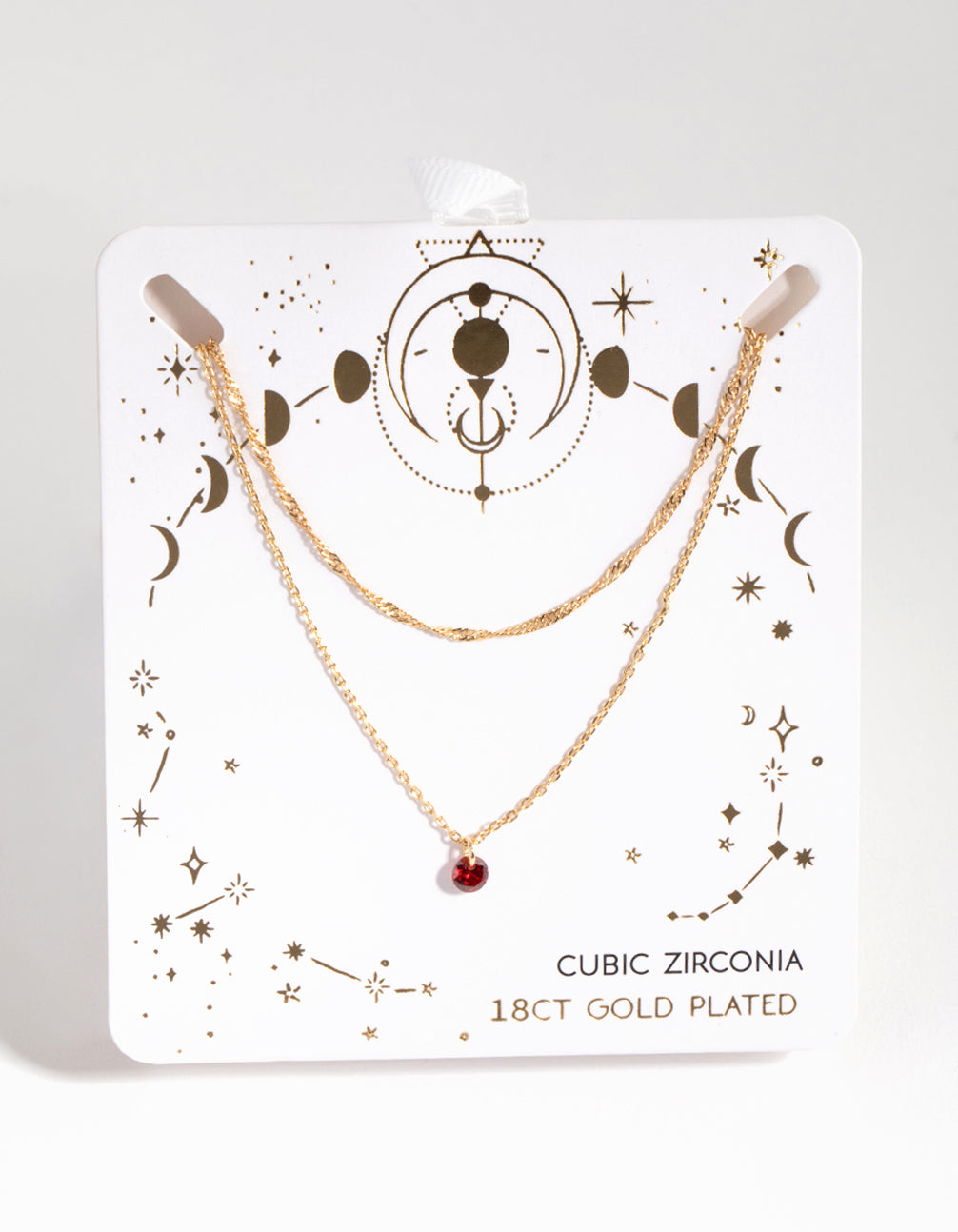 18ct Gold Plated January Garnet Cubic Zirconia Necklace Set