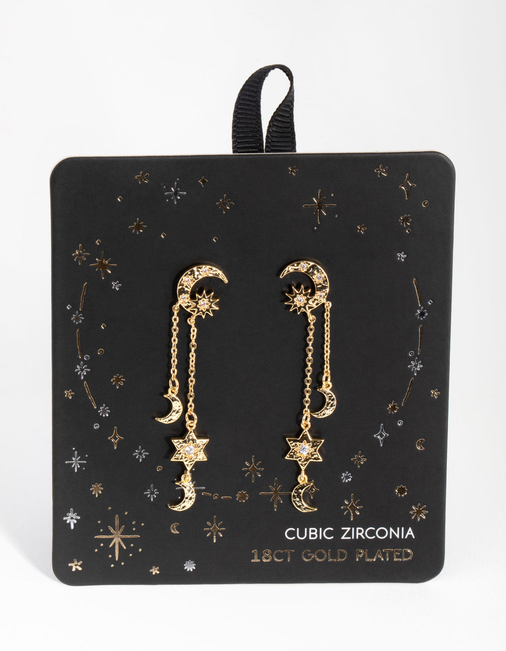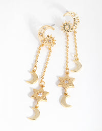 18ct Gold Plated Star & Moon Drop Earrings