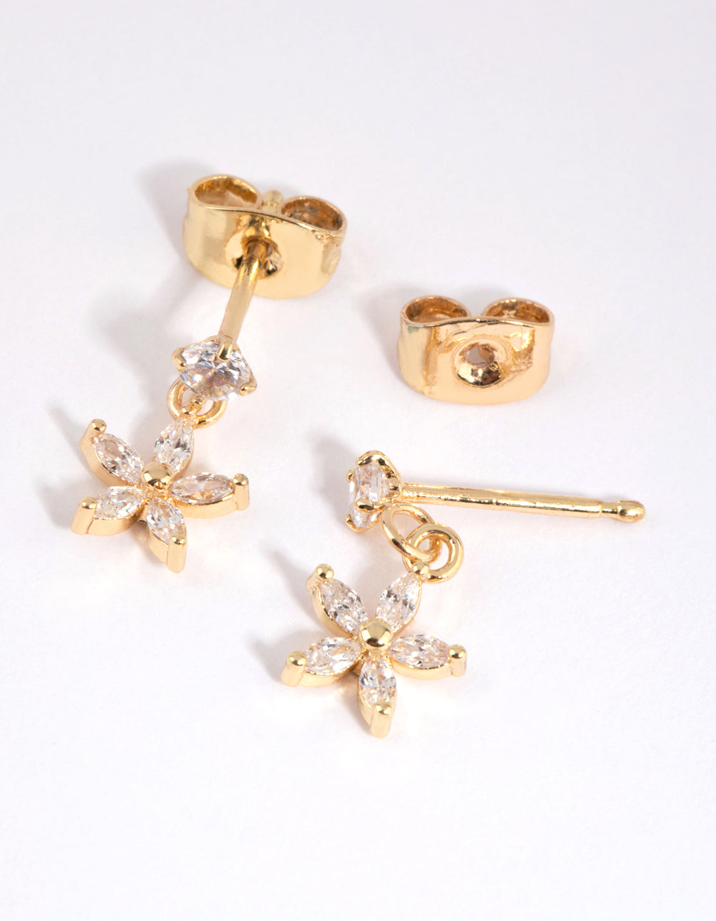 Gold Plated Surgical Steel Cubic Zirconia Flower Stud Earrings