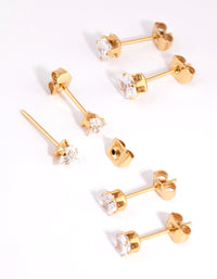 Gold Plated Surgical Steel Cubic Zirconia Mixed Shape Stud Earrings