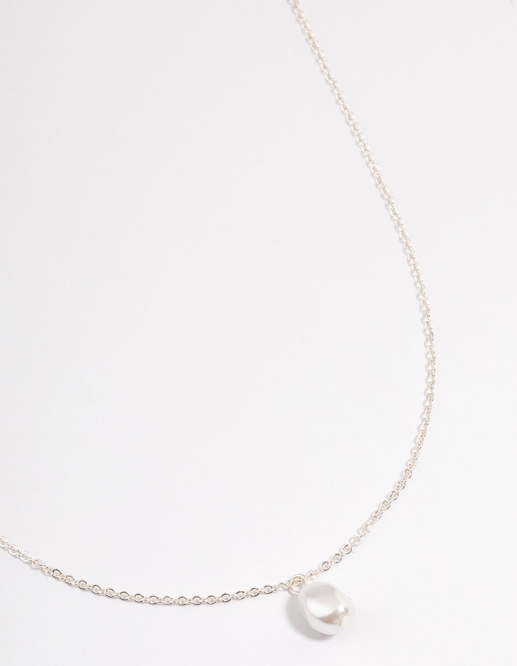 Silver Pearl Dangle Necklace