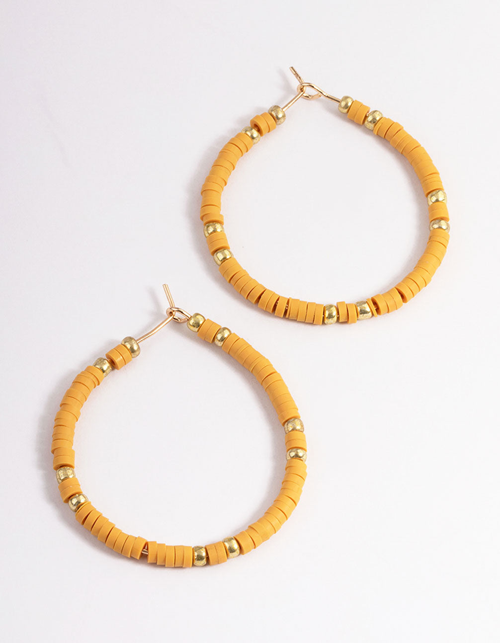 Colour your collection with these yellow beaded hoop earrings, designed with some metal detailing. Style these earrings with some vibrant, yellow accessories to match!