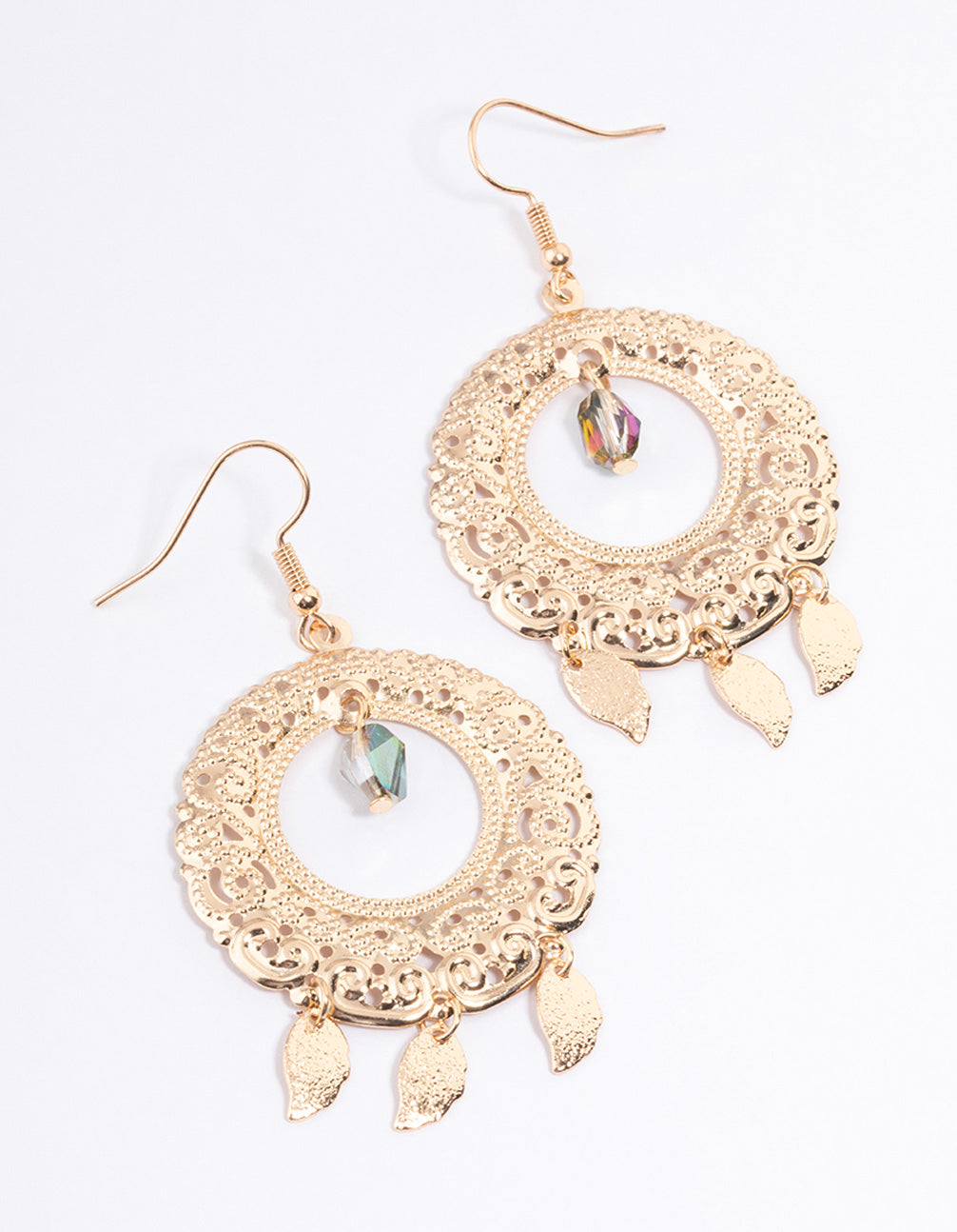 Grey Open Ornate Disc Drop Earrings