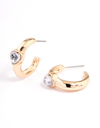 Gold Mini Diamante Heart Hoop Earrings