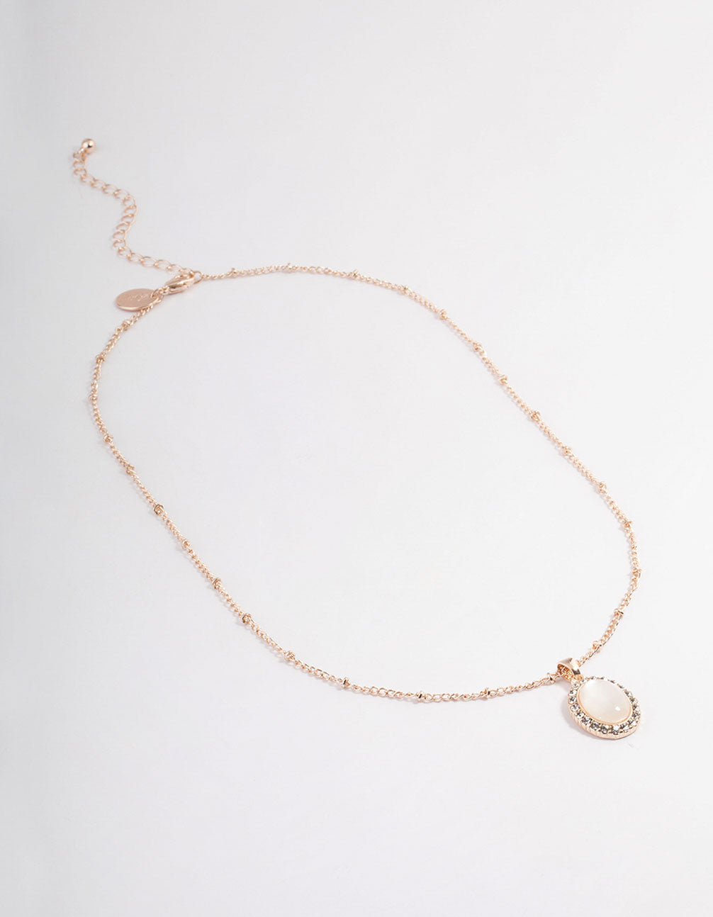 Add a feminine touch to your jewellery ollection with this rose gold, oval stone necklace. Pair this on-trend necklace with accessories from our Rose Gold Collection for more.