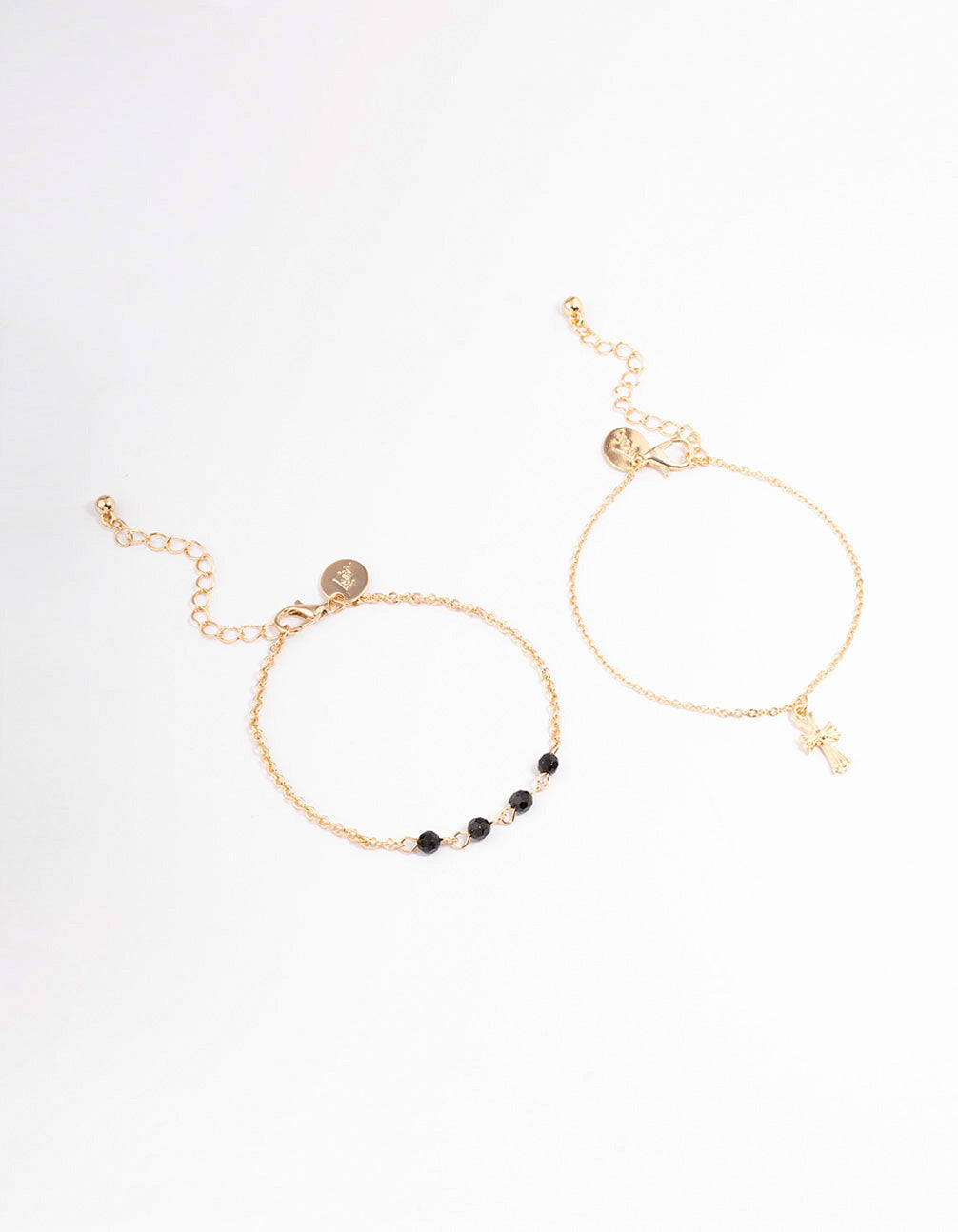 Curate the ultimate collection with our range of essential jewellery packs! This set contains two, individual anklets with a gold setting. These anklets feature delicate beading and cross motifs for added detail.