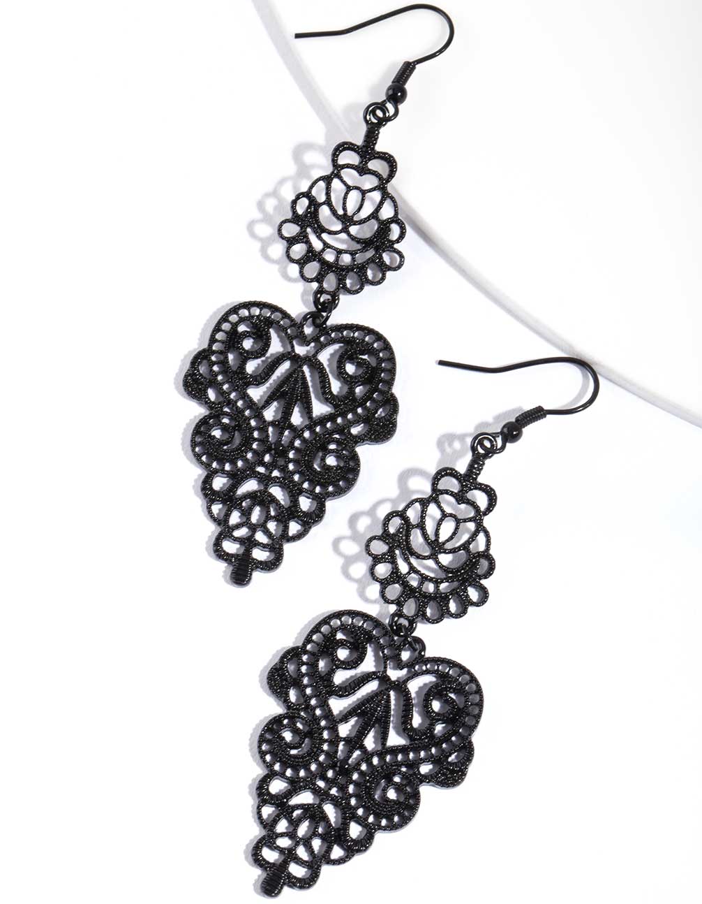 Add some edgy glamour to your evening look. This gorgeous earring set features filigree pattern drop in jet black. Style with other dark jewellery for a sultry look.