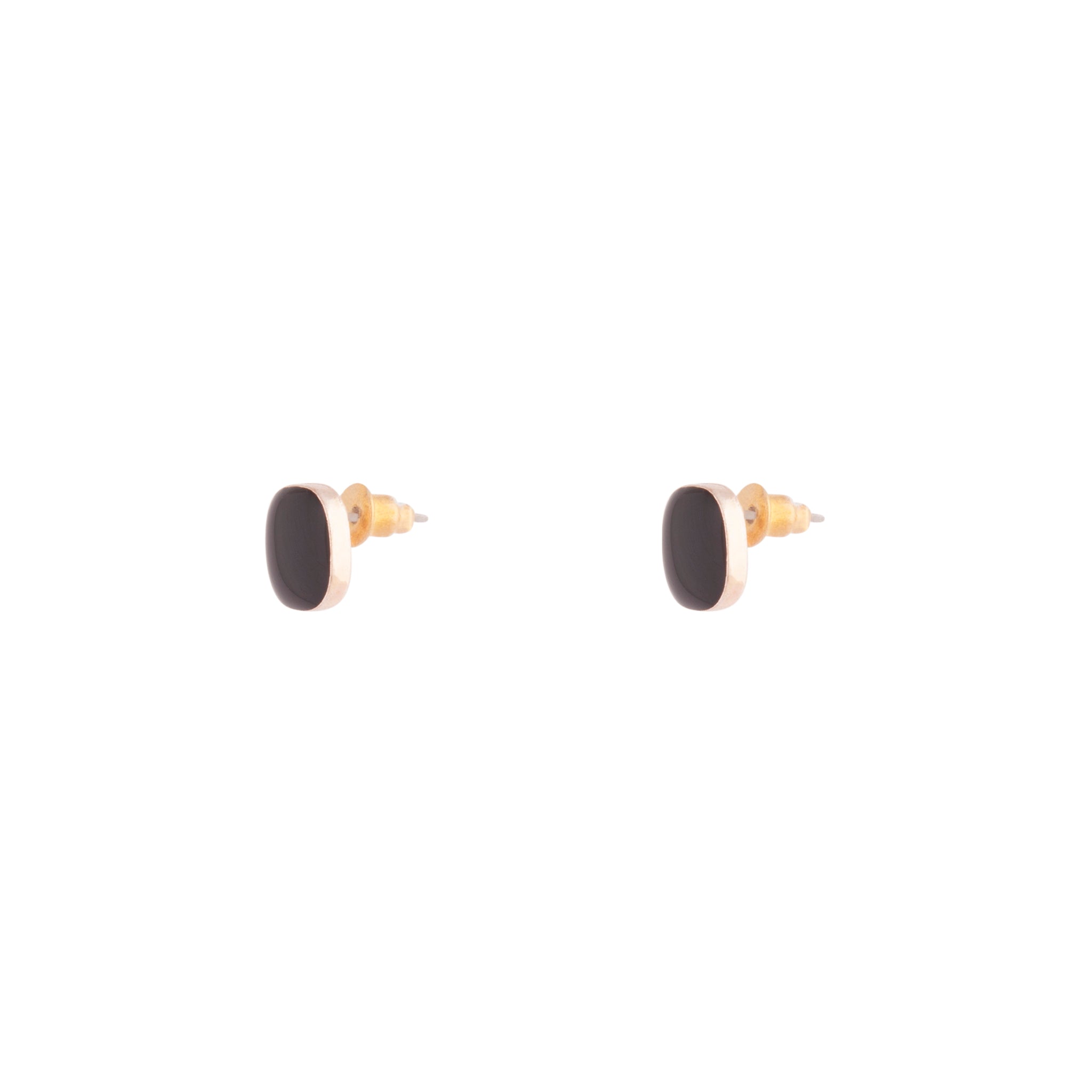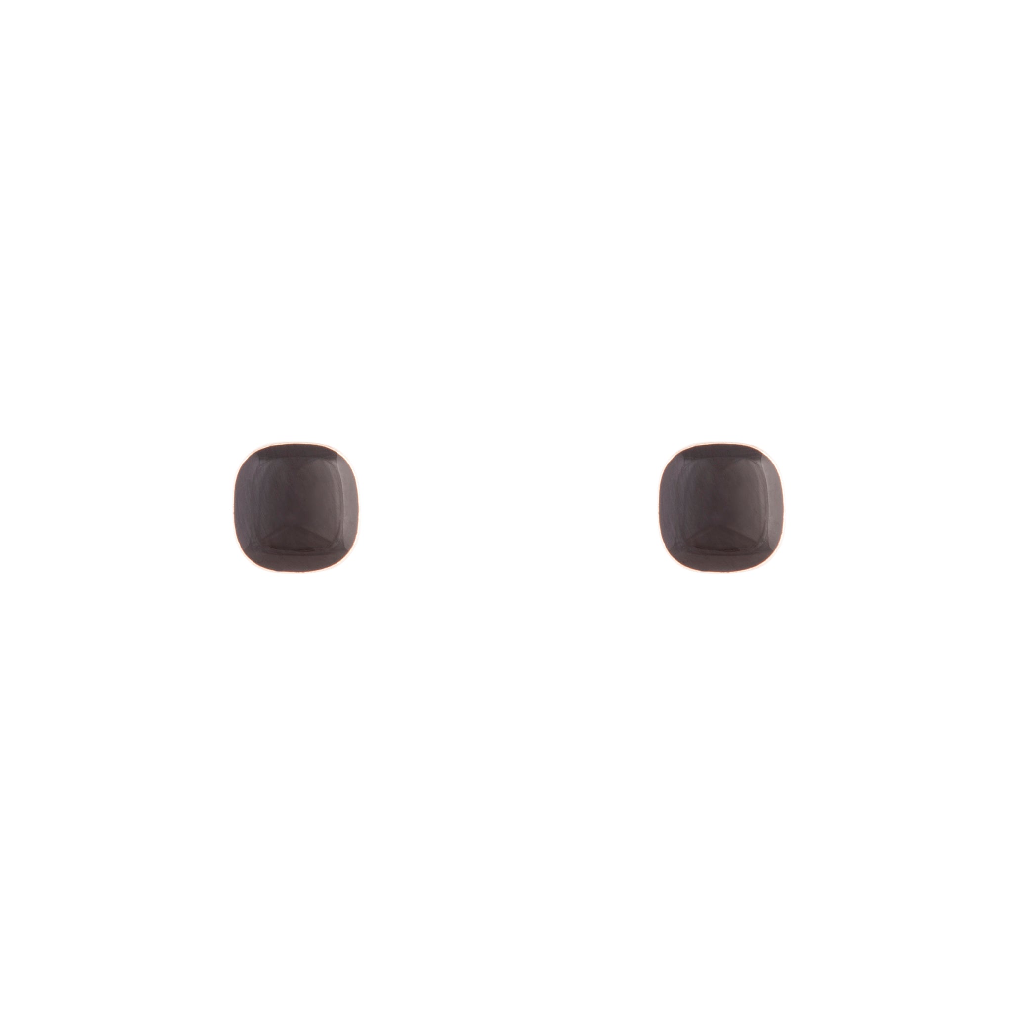 A pair of rose-gold-toned stud earrings in a round square shape.