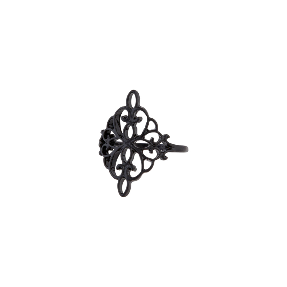 Add a sense of old world glamour to your ensemble with this filigree ring in black.