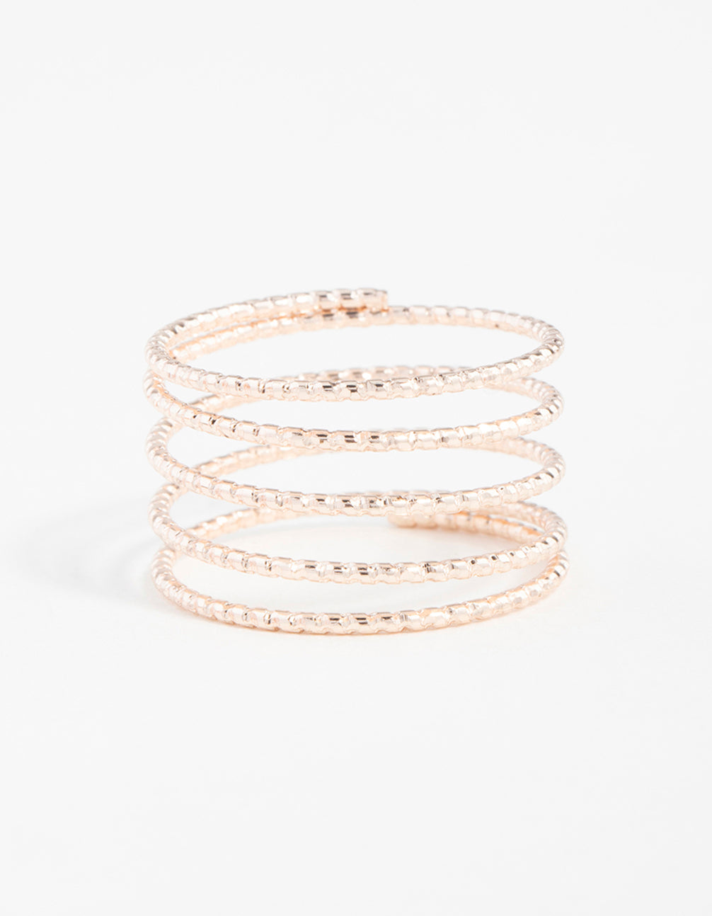 Enhance you style with this rose gold-toned diamond cut spiral ring.