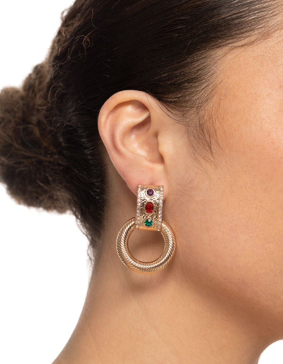 Gold Gem Door Knocker Earrings