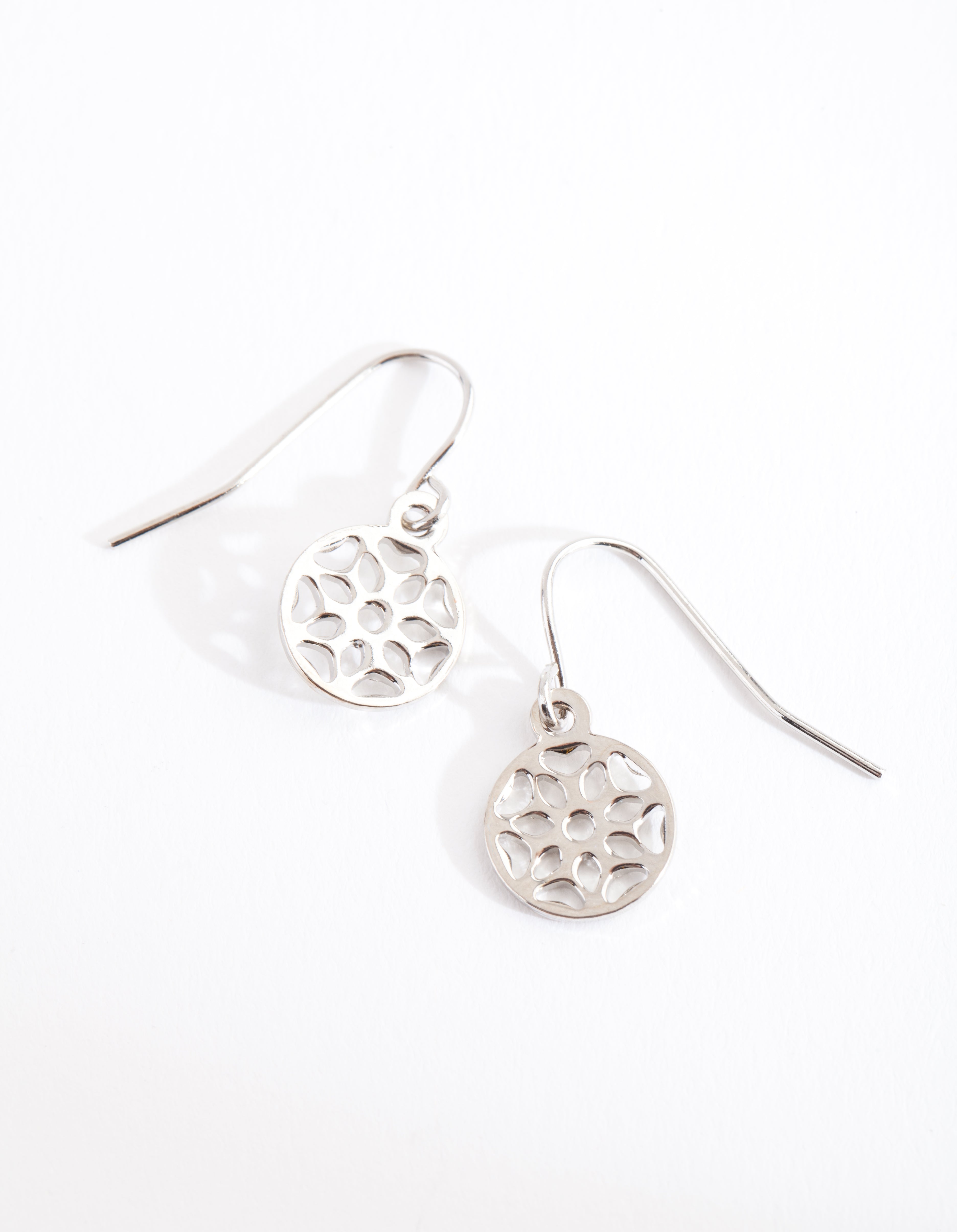 Silver Filigree Disc Drop Earrings