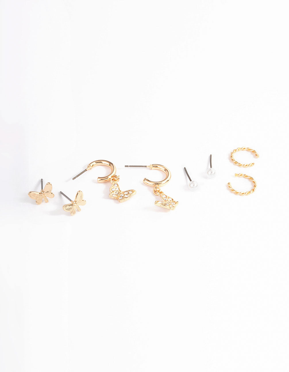 Gold Pearl & Butterfly Earrings 4-Pack Gold Pearl & Butterfly Earrings 4-Pack Gold Pearl & Butterfly Earrings 4-Pack