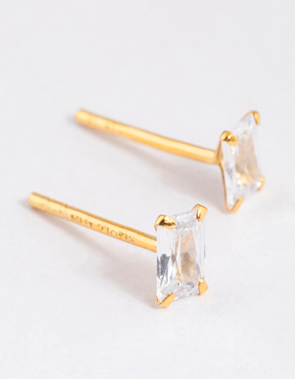 Gold Plated Sterling Silver Baguette Stud Earrings