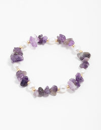 Amethyst Semi Precious Chip And Pearl Bracelet