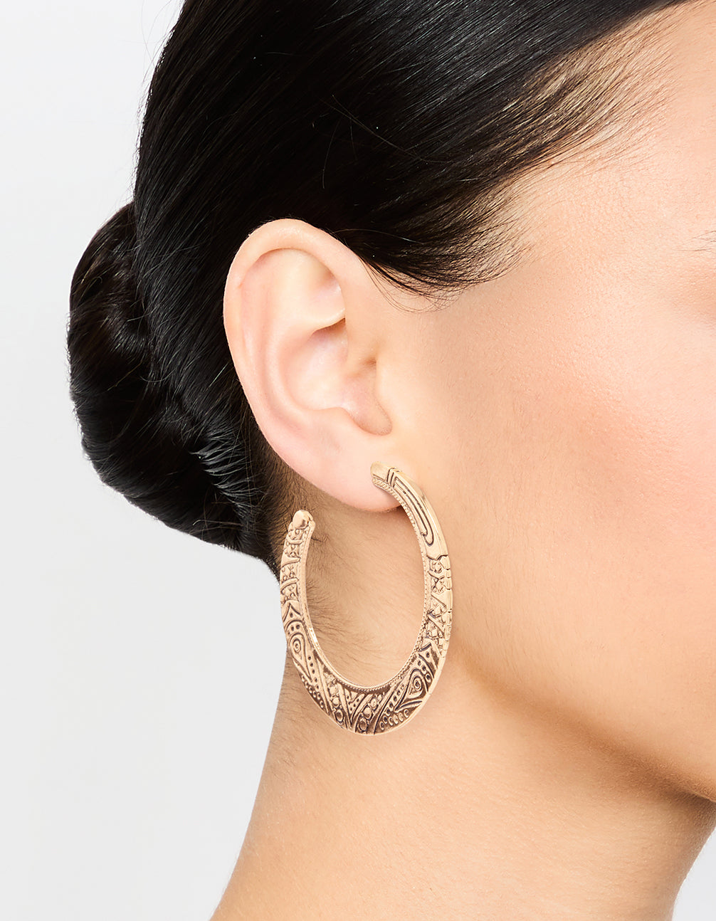 Add a dash of charm to your jewellery collection with these Antique Gold Patterned Hoop Earrings. Perfectly blending a timeless antique gold finish with a fun, patterned design, these hoops are brimming with vibrant energy. Whether you're heading to a festive celebration, a casual day out, or even a dressy dinner, these earrings are a versatile choice. Their classic hoop shape with intricate detailing makes them a standout accessory that pairs beautifully with flowy dresses, bold prints, or even your favourite jeans and a tee. Ideal for anyone who loves unique earrings with a touch of ethnic flair, these hoops are an effortless way to elevate any outfit.