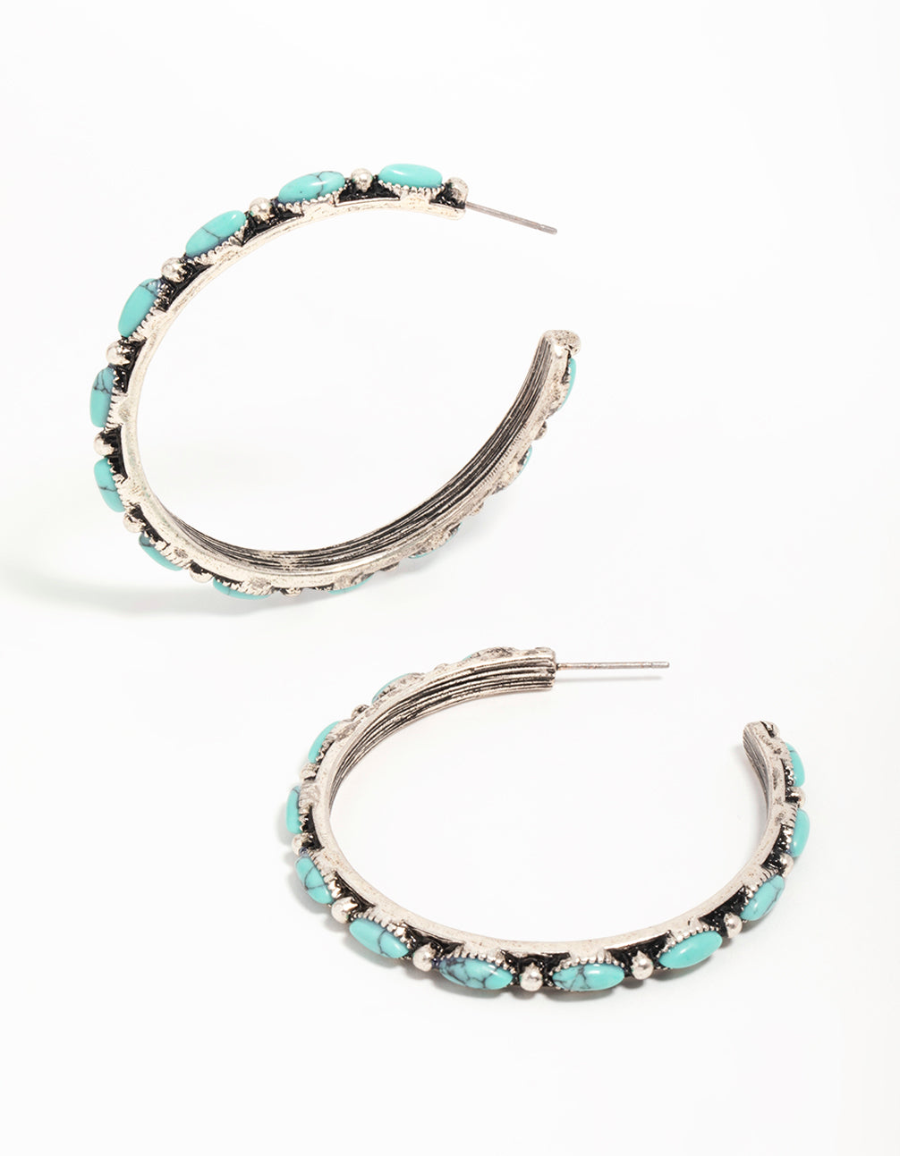 Antique Silver Turquoise Large Hoop Earrings