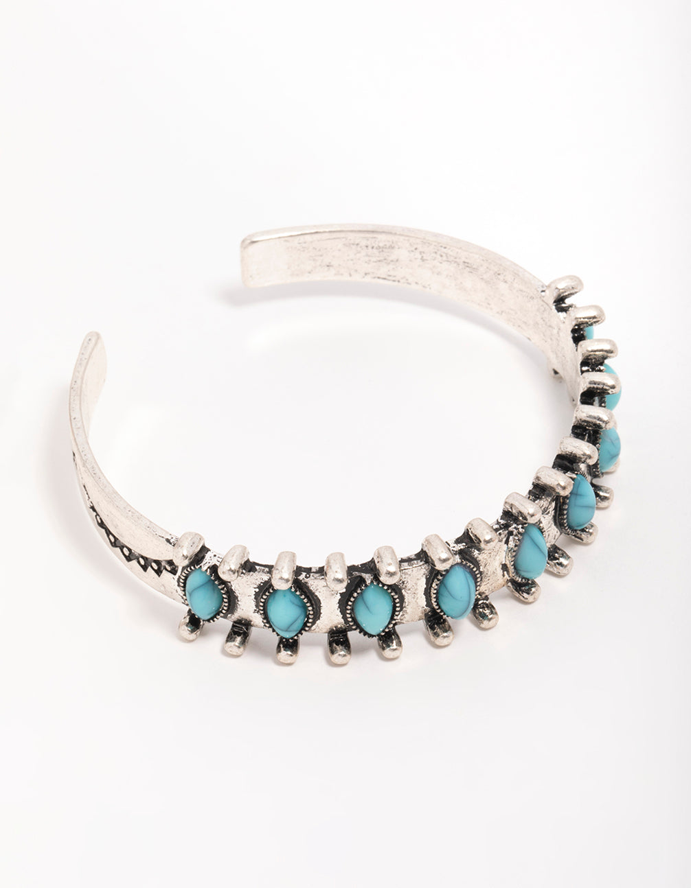 Add a touch of boho-chic charm to your look with this Antique Silver Turquoise Western Wrist Cuff. This stunning piece of jewellery features an intricate western-inspired design in antique silver, beautifully complemented by a striking turquoise gemstone. Perfect for festivals, casual outings, or adding a unique flair to your everyday wardrobe, this cuff bracelet is a standout accessory. The open design offers a comfortable fit, while the bold turquoise stone adds a pop of earthy colour to your outfit. Pair it with flowy dresses, denim jackets, or even a classic white tee to channel effortless western vibes. Whether you're dressing up or down, this versatile wrist cuff will quickly become your go-to statement piece.