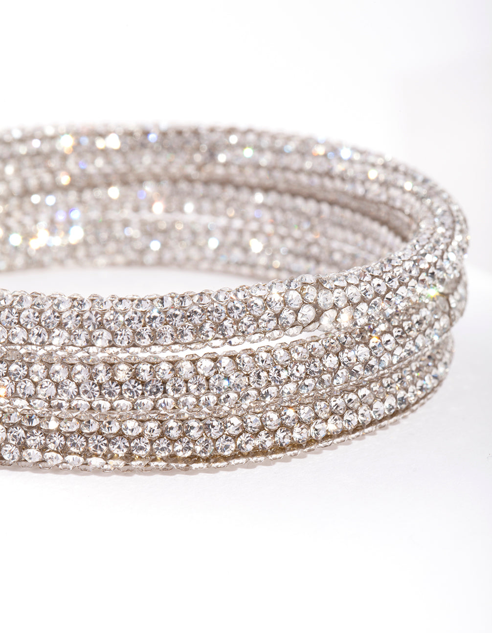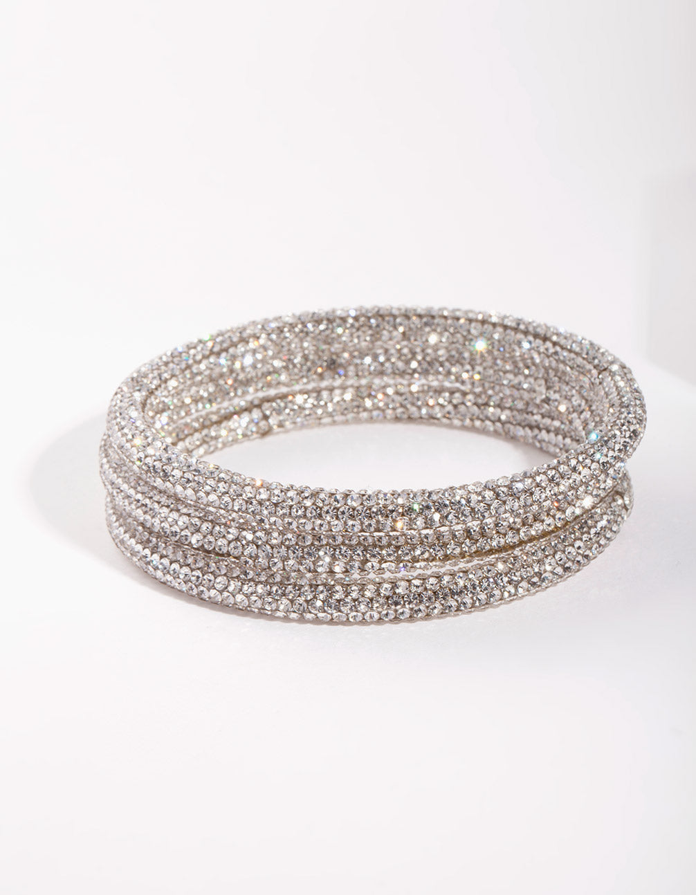 Create the ultimate wrist-stack with a fashion bracelet! This pack features diamante embellished designs in a silver tone.