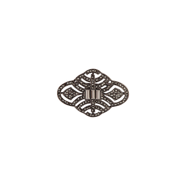 The brooch is the most versatile accessory you can own. This must-have style in a vintage gunmetal tone can be pinned to bags, shoes, clothes and turbans for a seriously on-trend look.