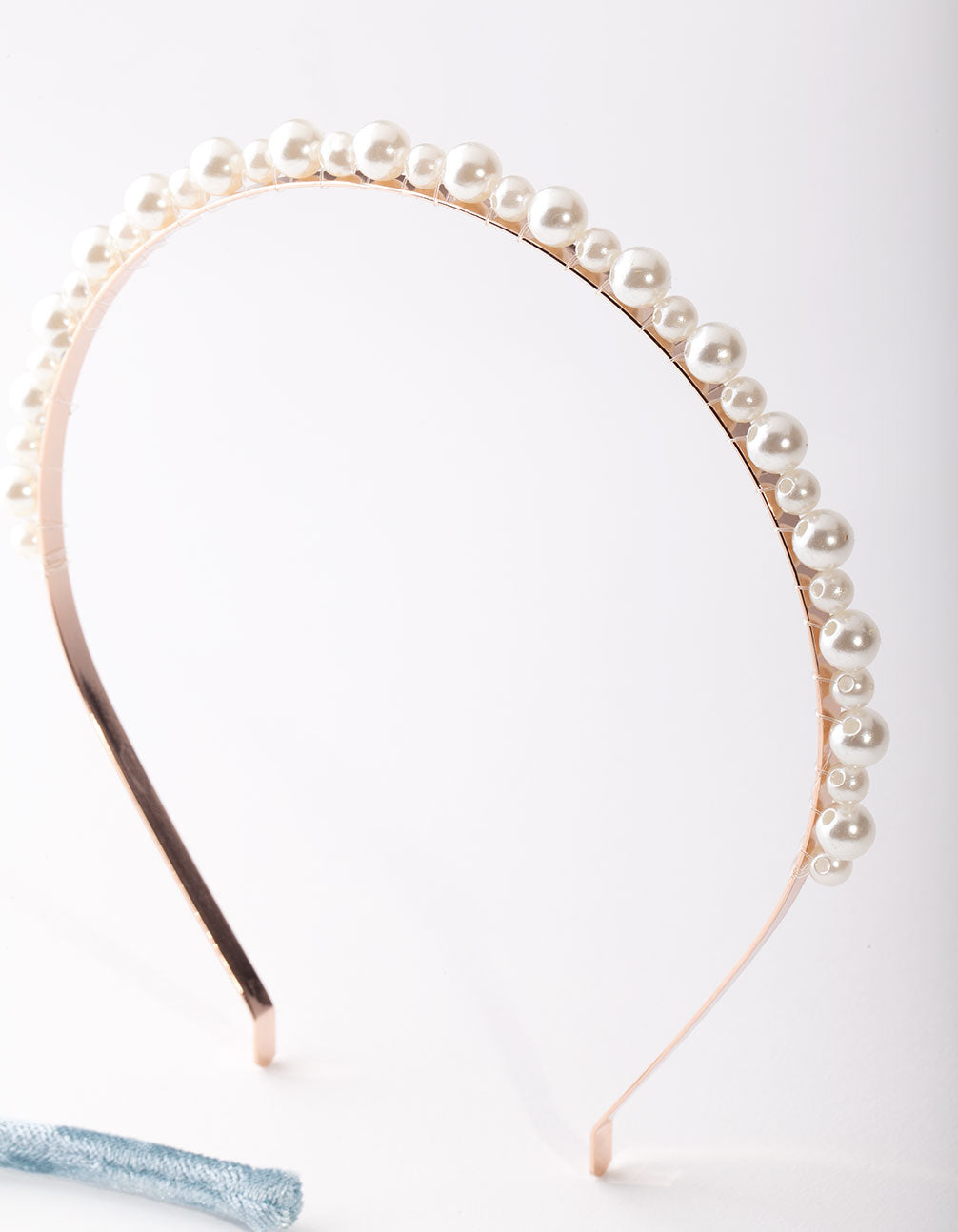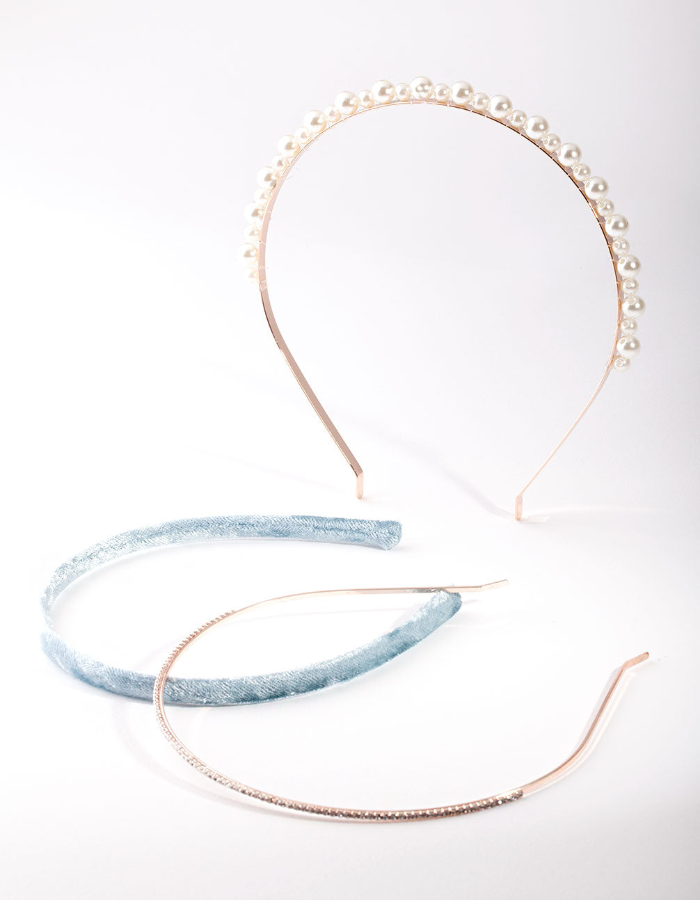 Whether you are heading to brunch, a wedding or just wanting to look glamorous for a party, this hair accessory 3 pack has a perfect style to complete any event ensemble! This headband pack comes with a trio of pearl and velvet styles in a rose gold-tone. Subtle and understated, these headbands are an elegant finish to your outfit, mix and match to suit your wardrobe!