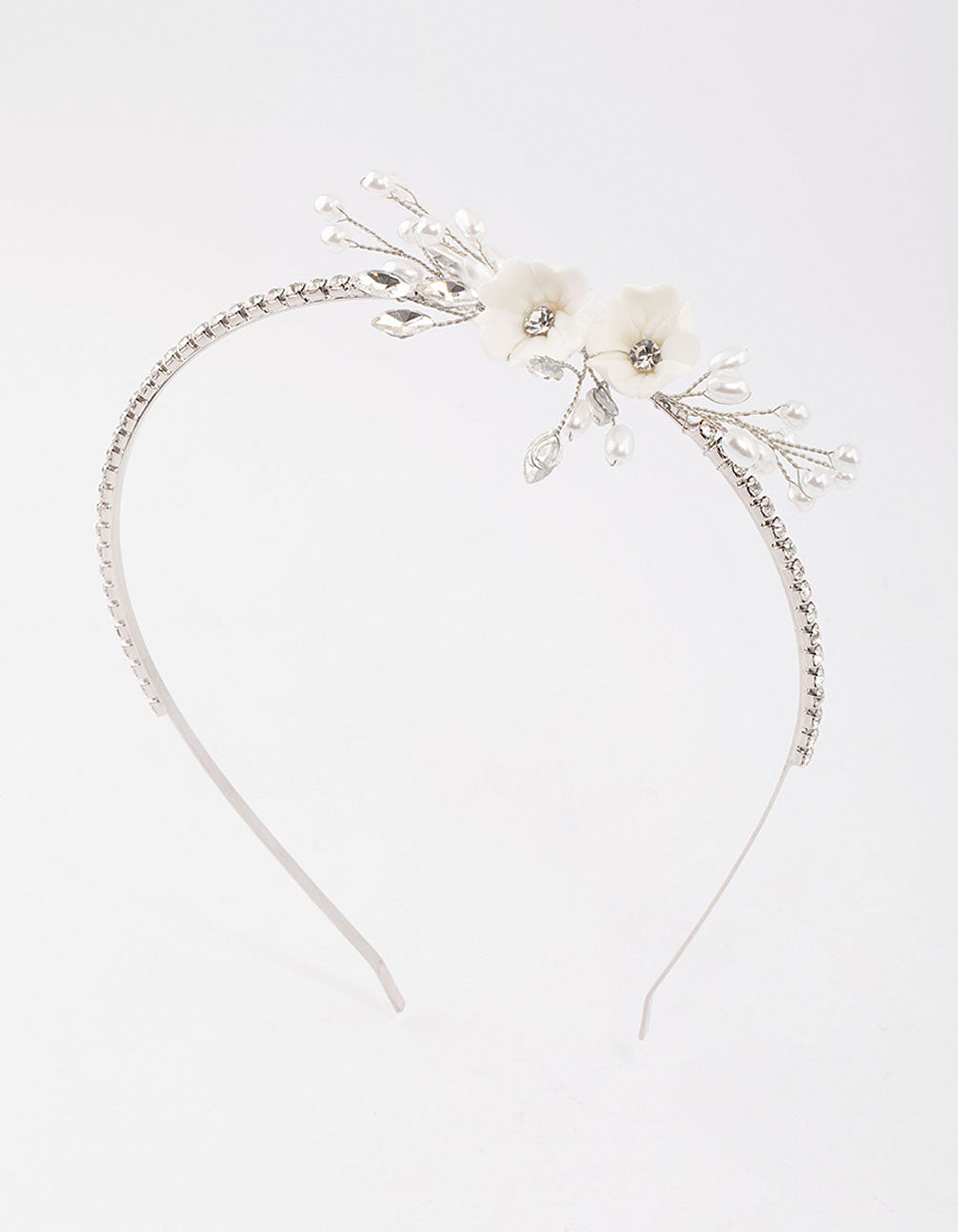 - Pair this diamante and pearl headband with a pair of simple pearl drop earrings for a pared back and sophisticated finish.