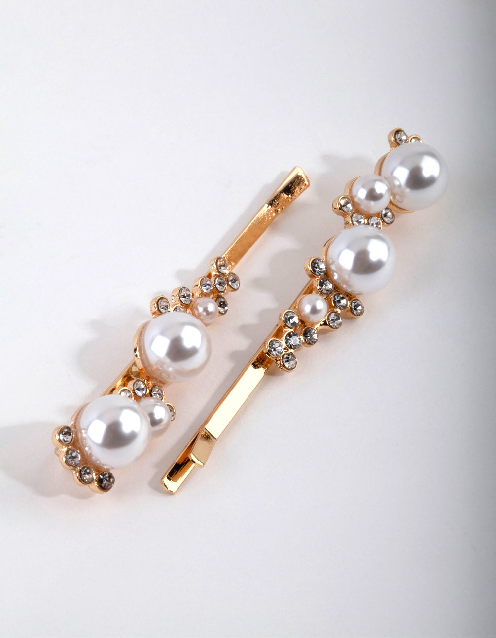 Gold hair accessories are perfect for those wanting to create a glamorous and elegant occasion look. These lovely long hair slides have a shiny gold-toned finish and are adorned with faux pearls. Draw attention to your luscious locks with this hair clip pack.