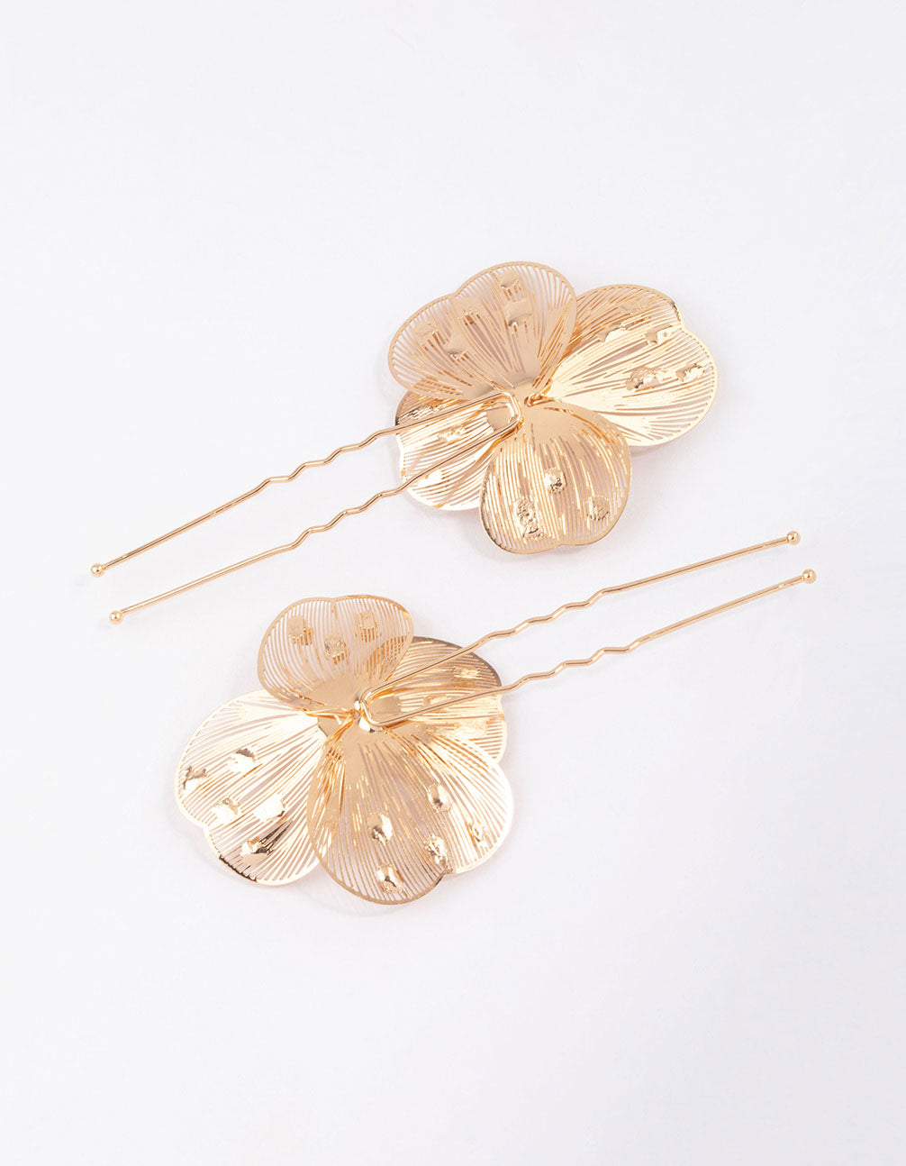 Gold Pearl Etched Flower Hair Pin Pack