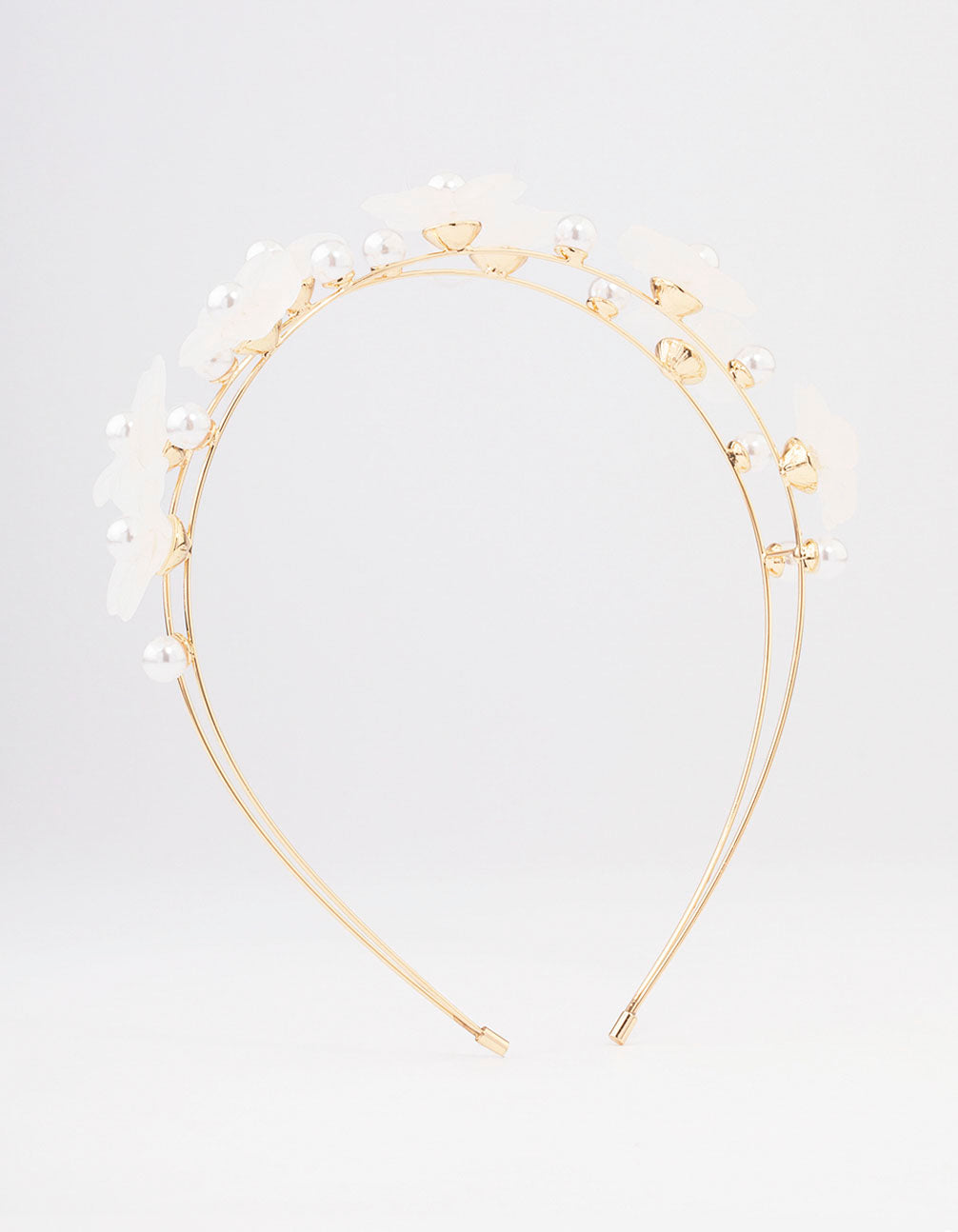 Gold Pearl Flower Double Headband