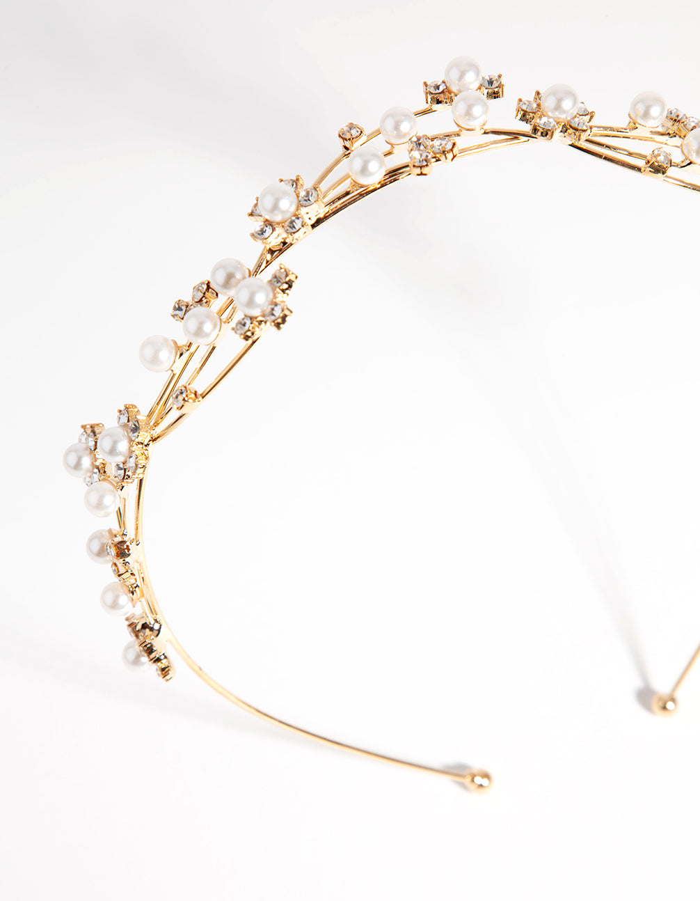 Add a touch of whimsy to your outfits by experimenting with hair accessories. This gorgeous gold-toned headband is studded with faux pearls and diamantes. Wear it to sparkle and shine!