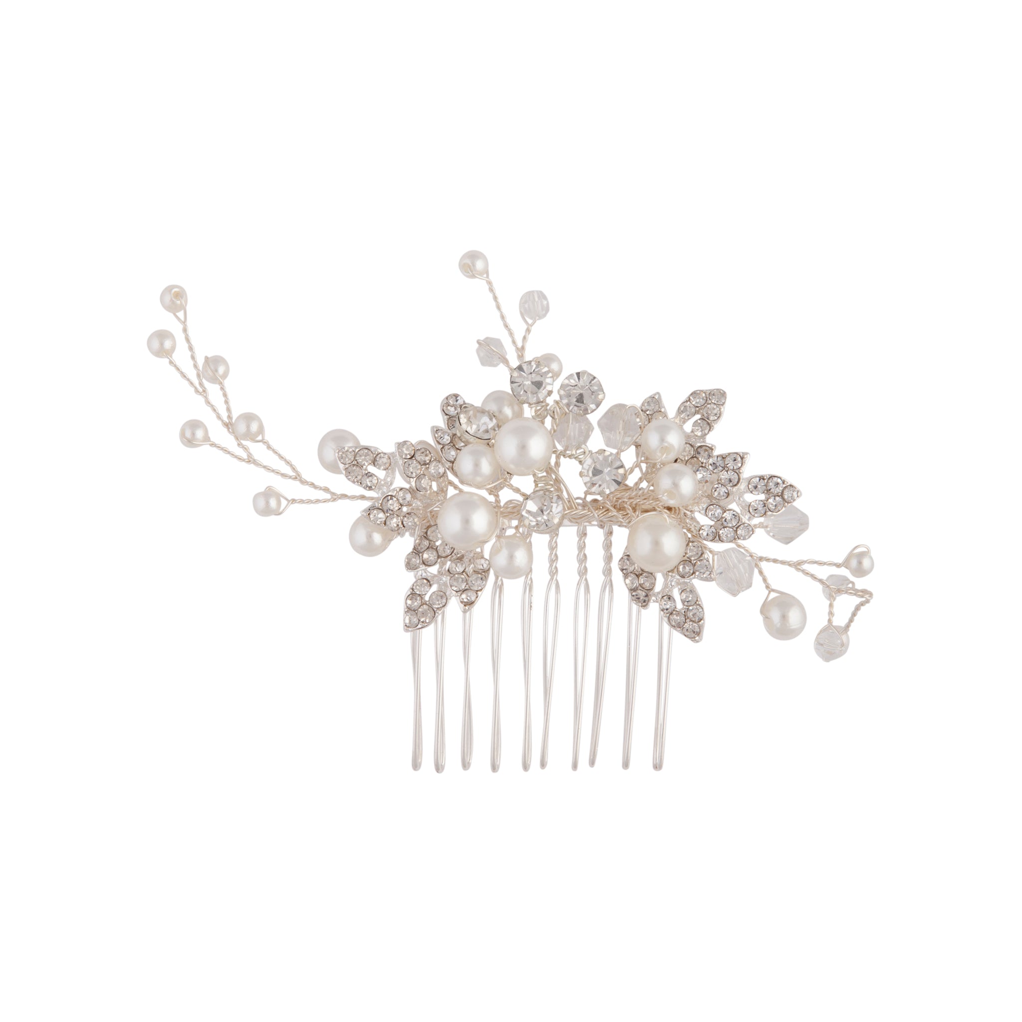 Silver Crystal Pearl Mini Leaf Comb