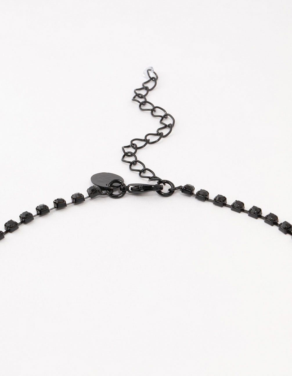 Get ready to rock some edge with a sprinkle of sparkle! This patterned necklace features black-coated diamante crystals in a flirty, edgy lace design—ideal for adding a funky twist to any outfit.