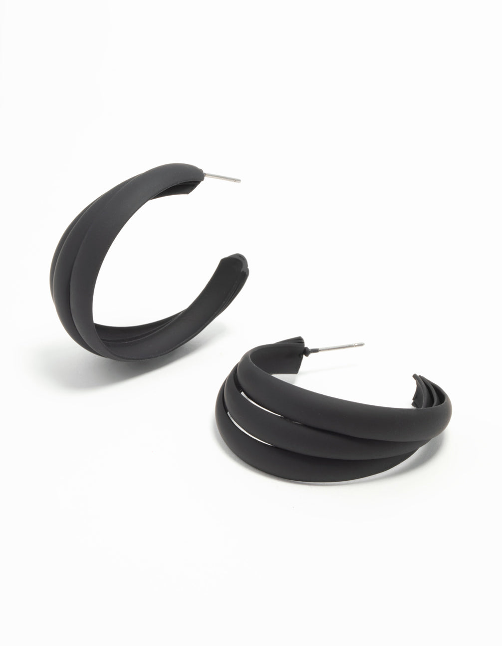 Add some flair with these black hoops! Their sleek, ridged design brings a playful edge to any outfit.