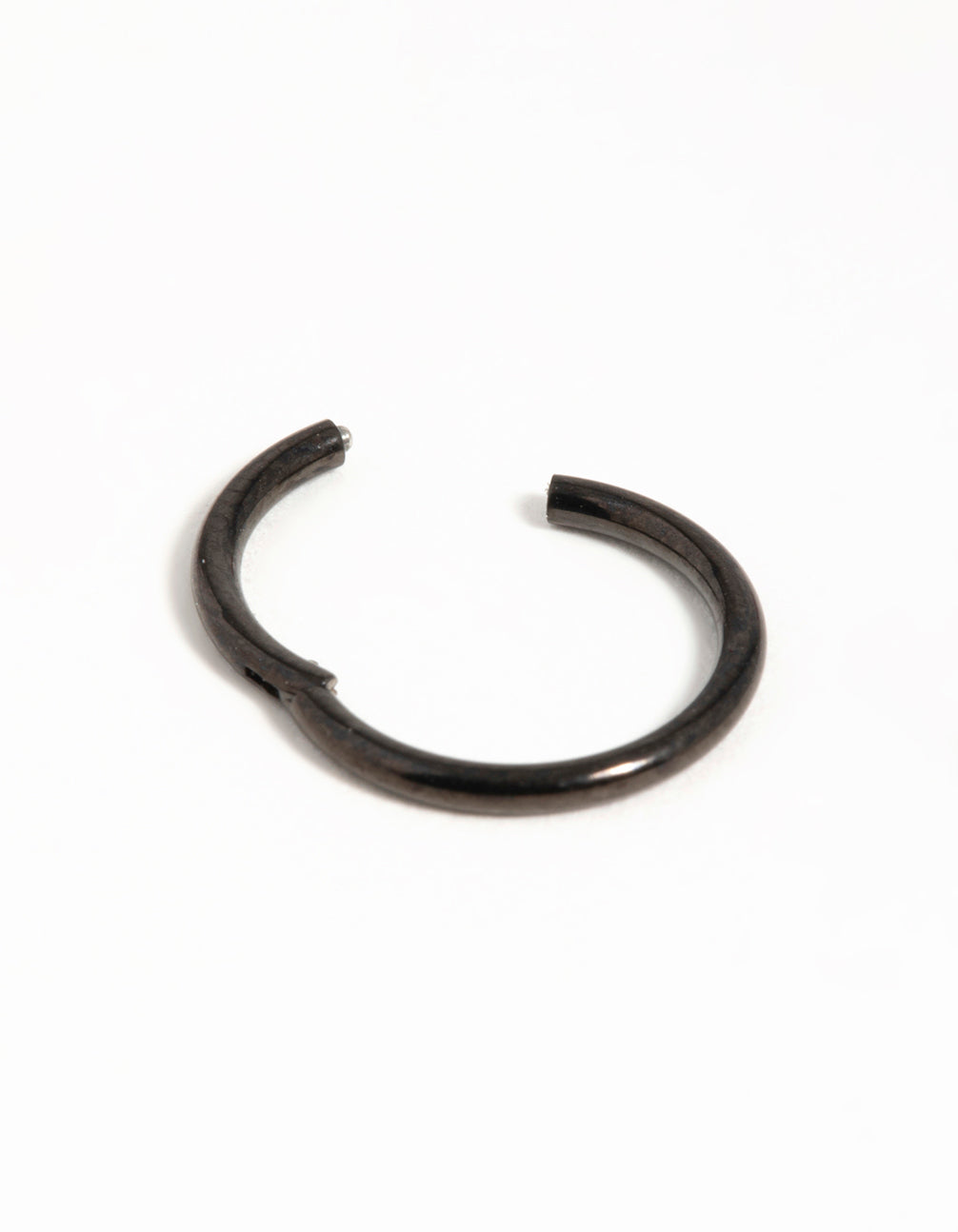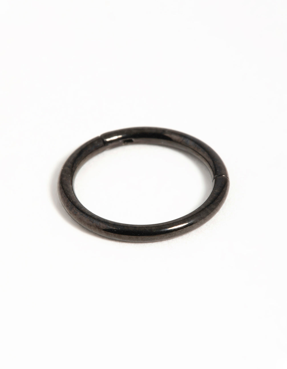 Elevate your piercing game with this Black Coated Metal Surgical Steel Black Ear Clicker, a sleek and versatile piece of body jewellery perfect for cartilage piercings. Made from durable surgical steel with a striking black coating, this clicker ring brings an effortlessly cool edge to your look. Its minimal yet bold design makes it a go-to accessory, whether you're keeping it casual or dressing up for a night out. Ideal for helix, tragus, or other cartilage piercings, this hoop is easy to style solo for a chic, understated vibe or stacked with other earrings for a statement ear party. Perfect for those seeking stylish and reliable jewellery, this clicker is a must-have for your collection.