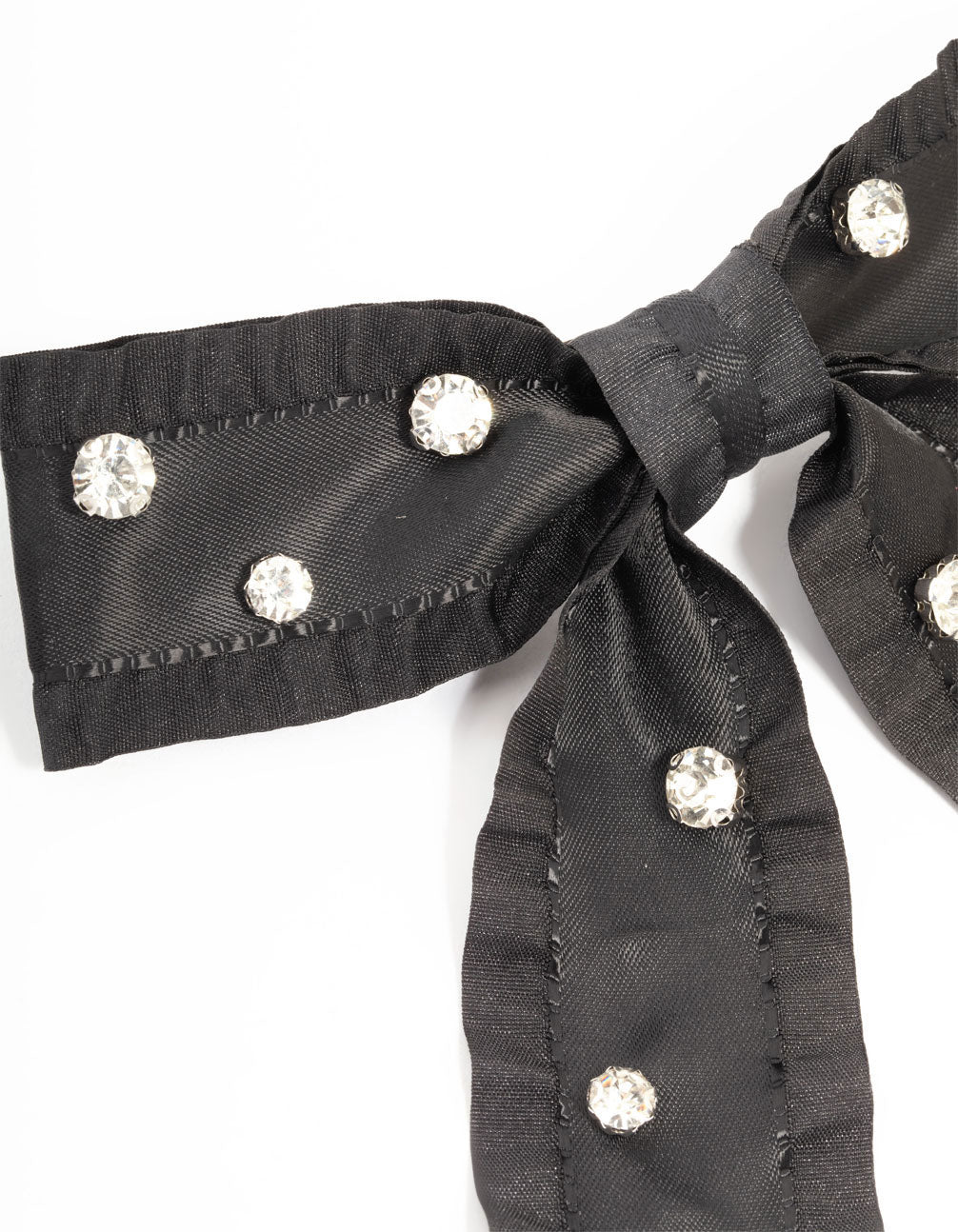 Bring the sparkle with this bow clip. This bow clip features a cool black frilly fabric base and sparkling diamantes for added glam. Great as a glam addition to your look.