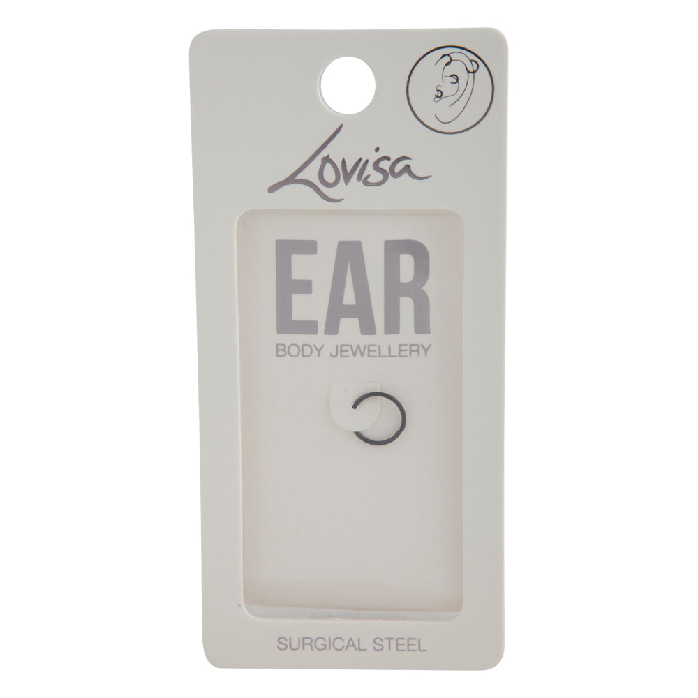 Our body jewellery is made from a surgical steel, making it perfect for daily wear. This classic thin clicker ring is in a black tone. This versatile design can be worn in so many ways! Try it as a cartilage earring for your helix, conch, rook, tragus or septum; the options are endless. Wear the earring individually or stack multiple piercings with other Lovisa black designs.