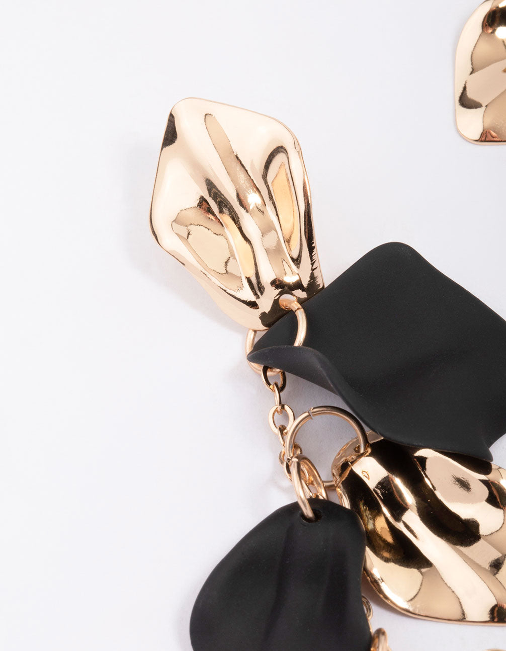 Black & Gold Petal Long Drop Earrings Black & Gold Petal Long Drop Earrings Black & Gold Petal Long Drop Earrings