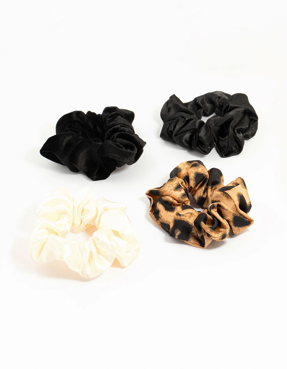 Treat someone special to fabulous hair with this chic scrunchies pack! With four stylish scrunchies in black, cream, and leopard print, it's the perfect set for on-the-go hair magic and is a great gift to slip into an xmas stocking.