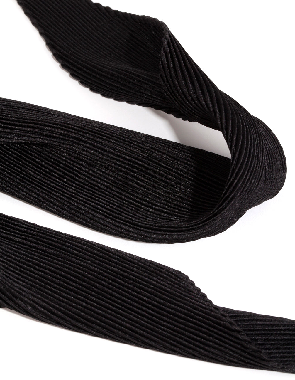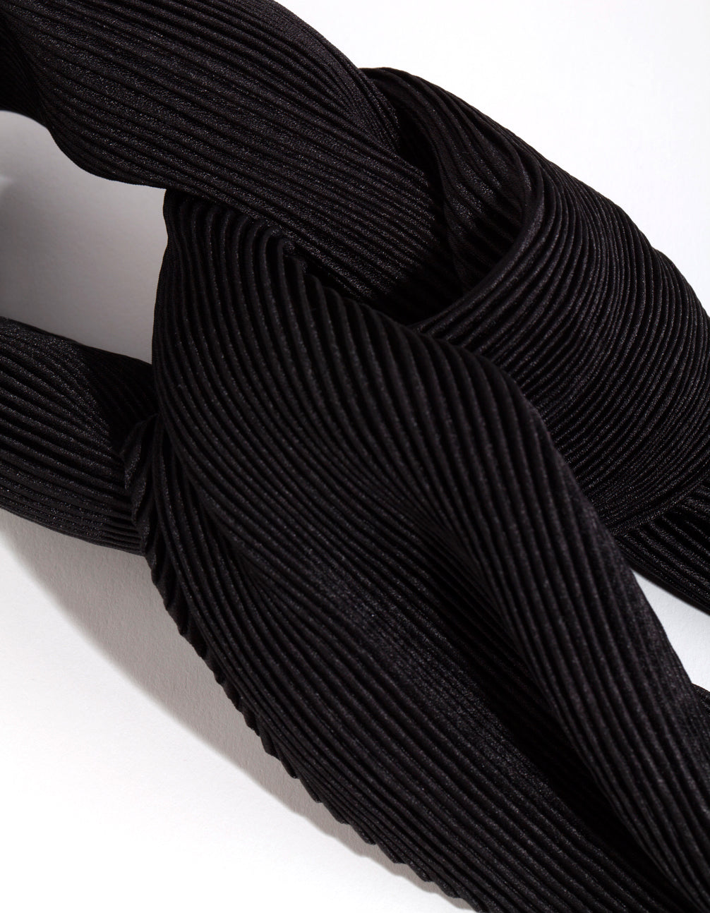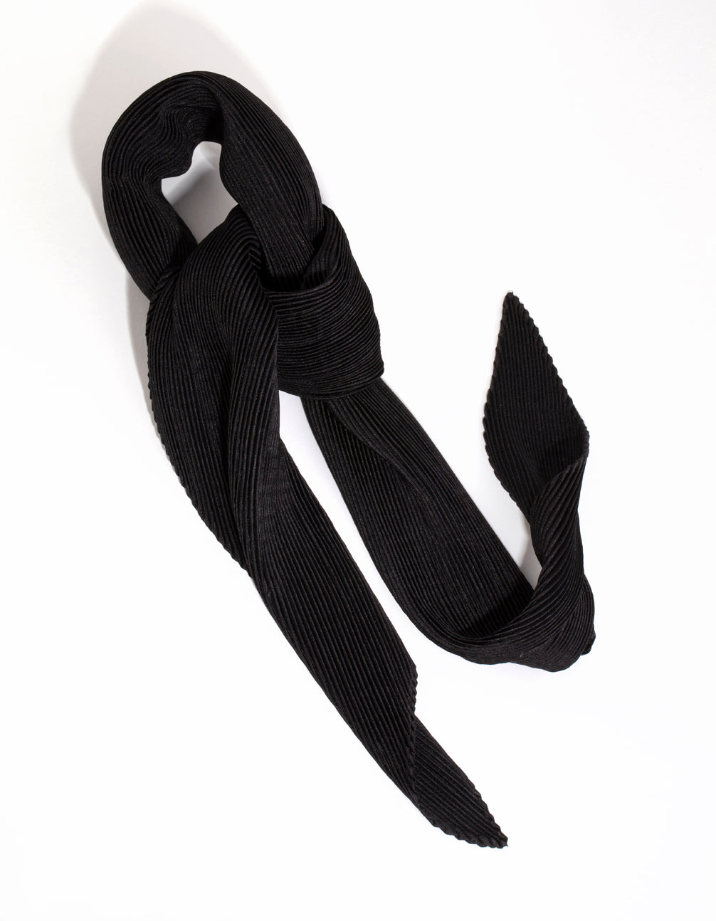 Scarves are the ultimate versatile accessory! Tie this chic piece to your ponytail, wear it Hollywood style with some chunky sunglasses, fashion it round your neck or wrap it around your handbag - the options are endless! This pretty black scarf features a pleated design.