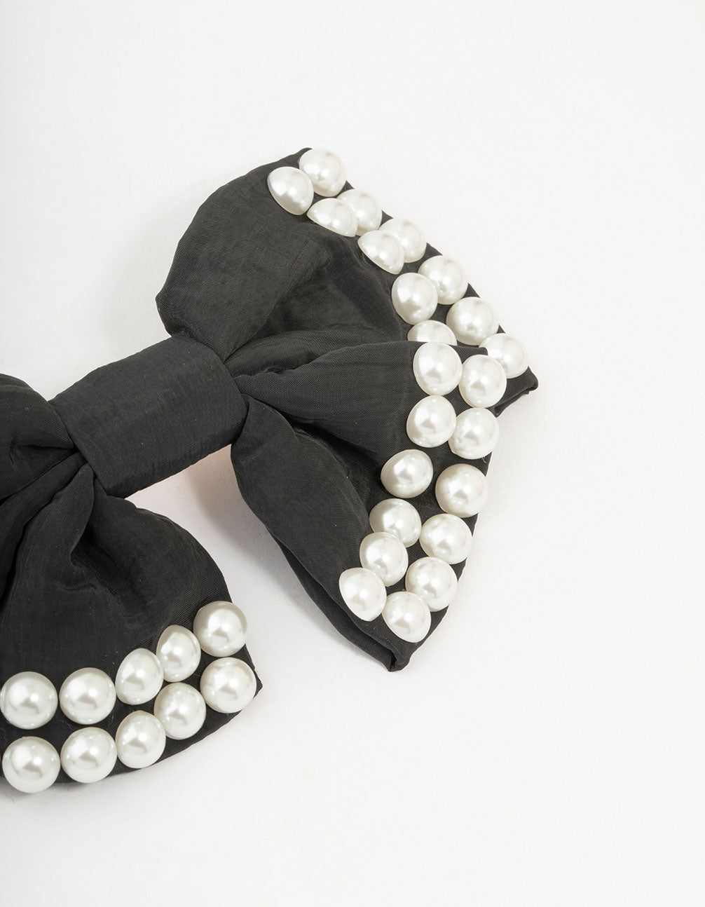 Boost your hair game with this chic bow barrette. Featuring a stylish black bow and elegant pearls, it's perfect for adding a touch of coquette charm and elegance to any look.