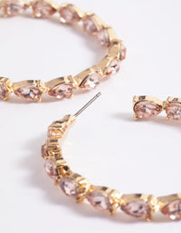 Gold Pear Stone Hoop Earrings
