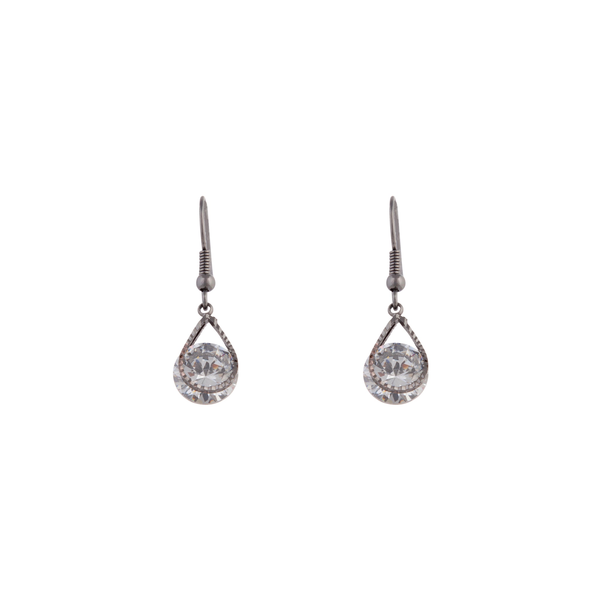 Gunmetal Cubic Zirconia Teardrop Earrings