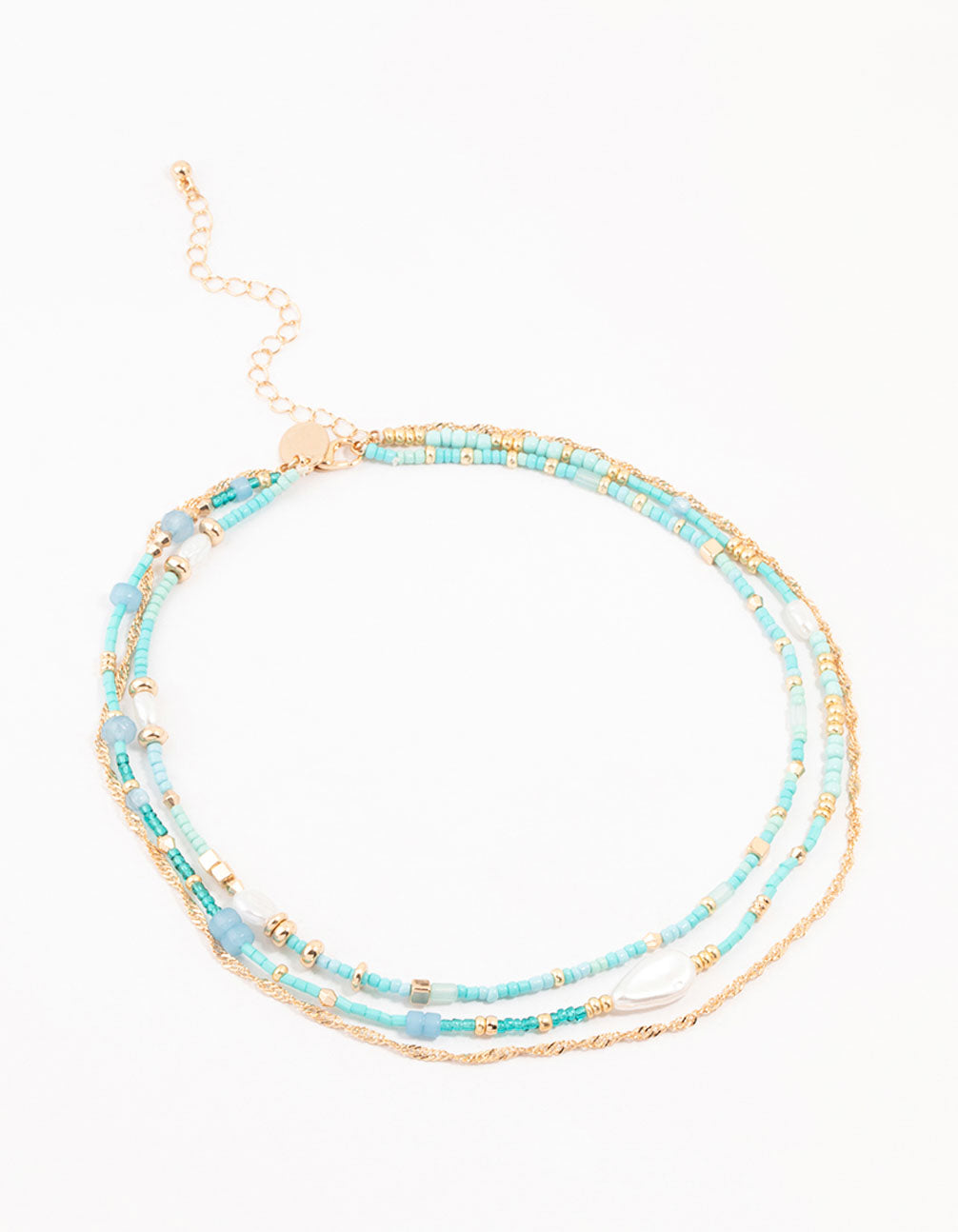 Dive into dreamy, ocean-inspired vibes with this Blue Beaded, Gold & Pearl Layered Choker. This layered choker necklace combines light blue beads, delicate pearls, and a touch of gold for a fresh, nautical feel. Perfect for beach days, brunches or evening soirees, it pairs beautifully with flowy dresses or off-shoulder tops. A must-have jewellery piece for layering lovers!