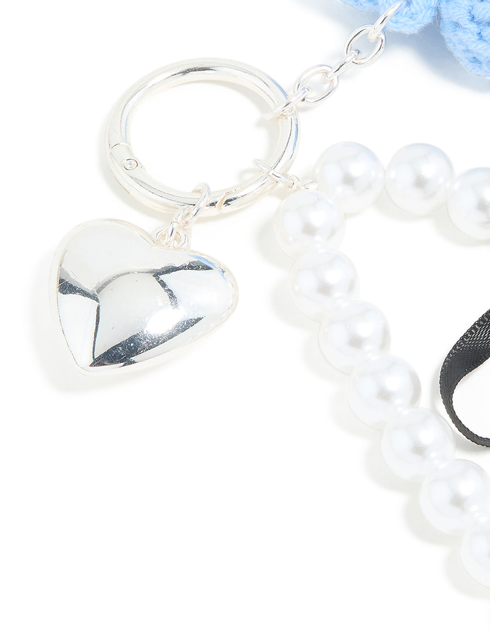 Blue Crochet Fabric Daisy & Pearl Key Chain
