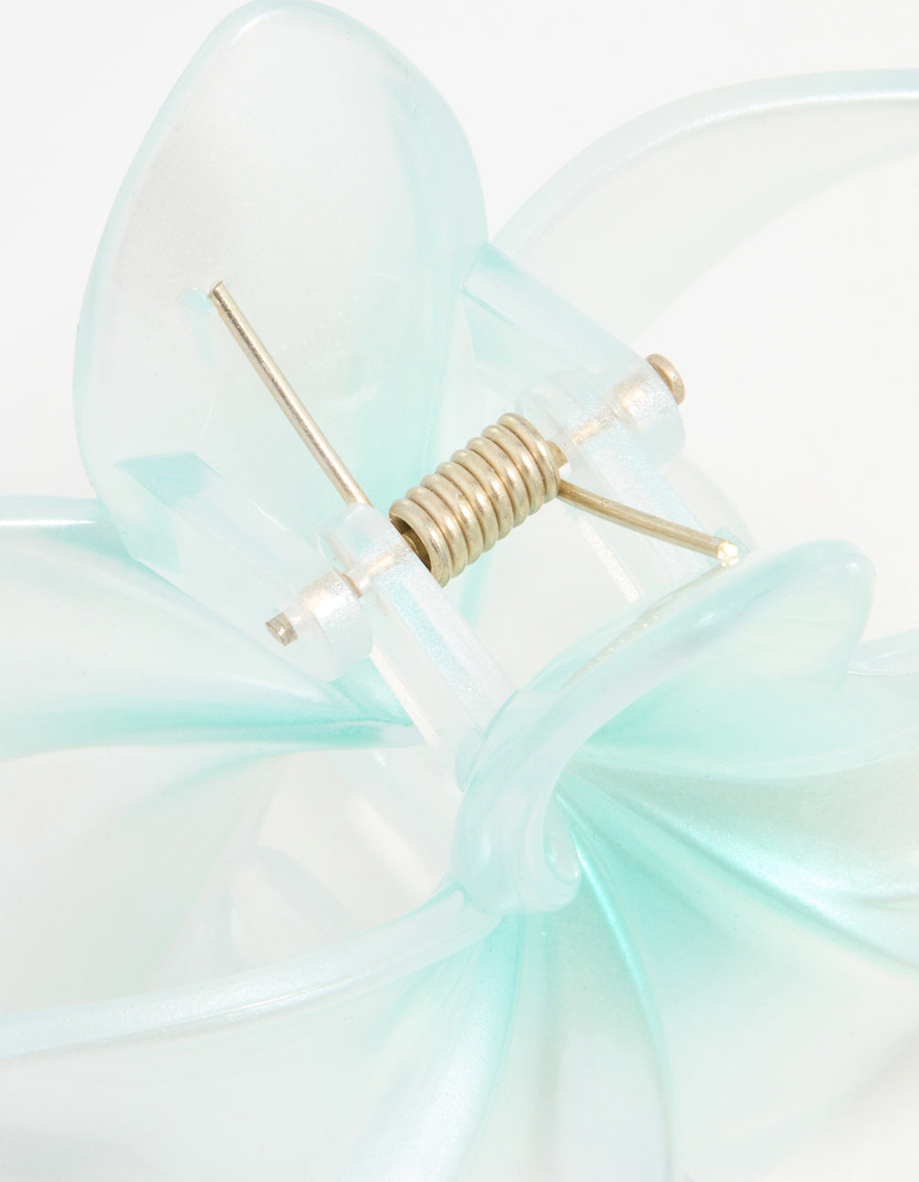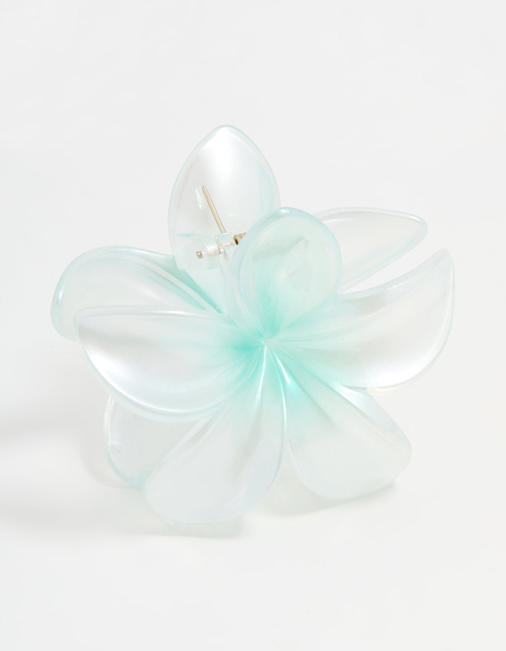 Upgrade your look with our Blue Ombre Pearlised Frangipani Flower Claw Clip! This clip keeps your hair in place and adds ocean vibes with its blue ombre finish and frangipani flower design. Perfect for a touch of beachy charm anywhere you go.