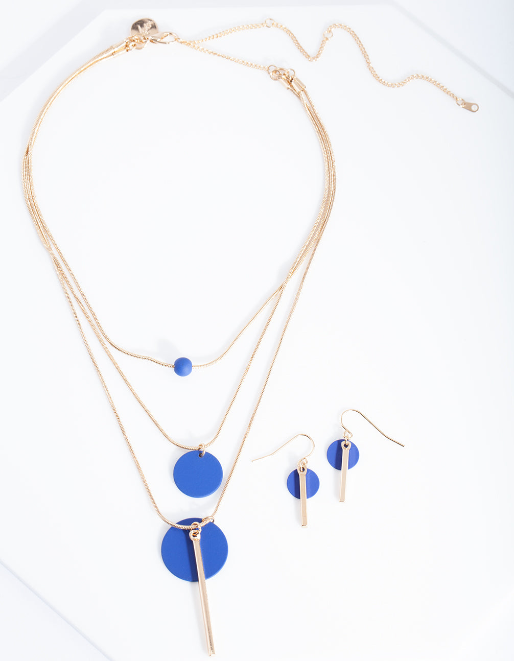 Layer it up with finer chains or wear alone for a considered look. Nearly every outfit can be elevated with neckwear. This jewellery set comes with matching earrings to a blue and gold-toned bead necklace.åÊ
