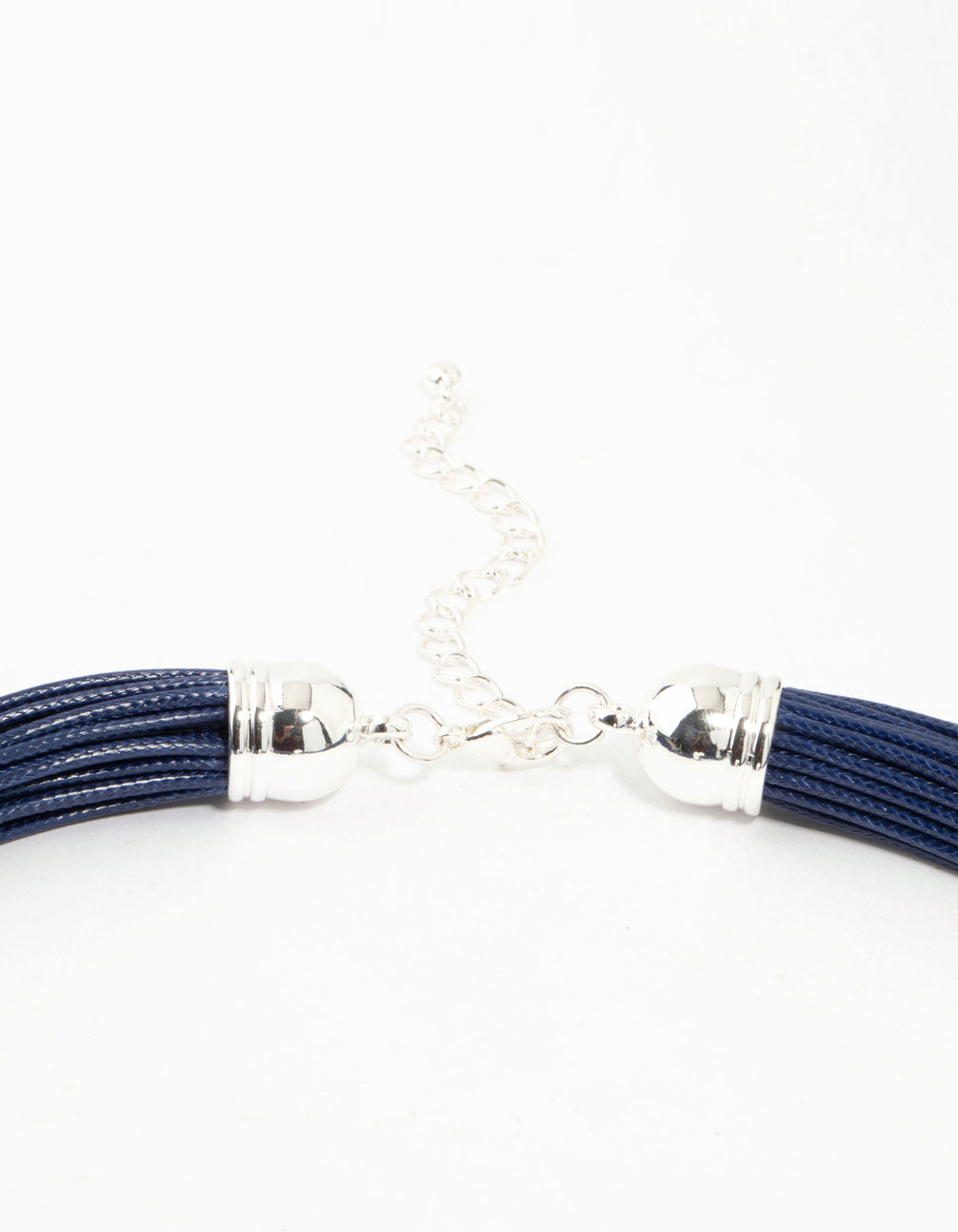 Blue Wax Cord Trio Silver Ball Necklace Blue Wax Cord Trio Silver Ball Necklace Blue Wax Cord Trio Silver Ball Necklace
