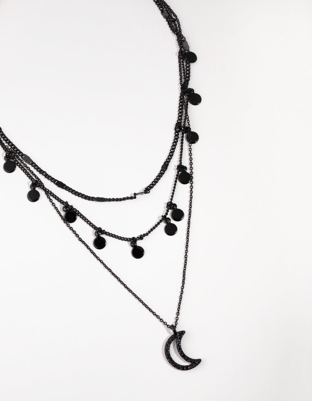 You can never have enough black in your wardrobe. This multi-row necklace features a midnight black shade, adorned with crescent moon attachments. Perfect for adding a chic finish to any look!
