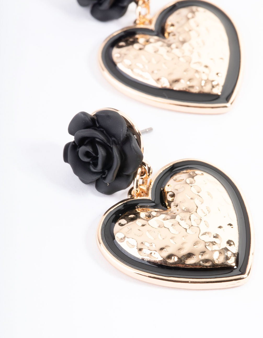 Gold Rose Drop Black Heart Earrings Gold Rose Drop Black Heart Earrings Gold Rose Drop Black Heart Earrings