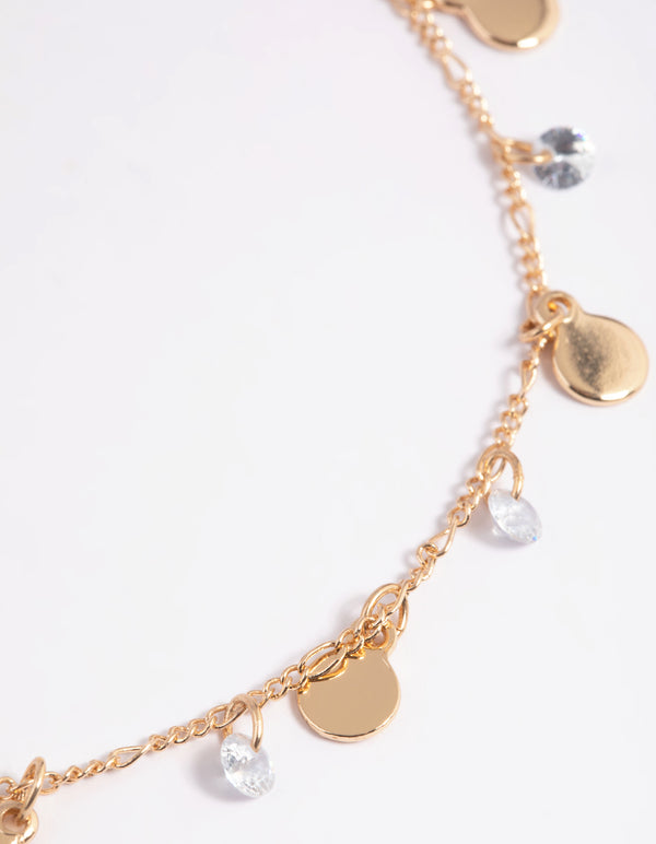 Gold Cubic Zirconia Coin Anklet